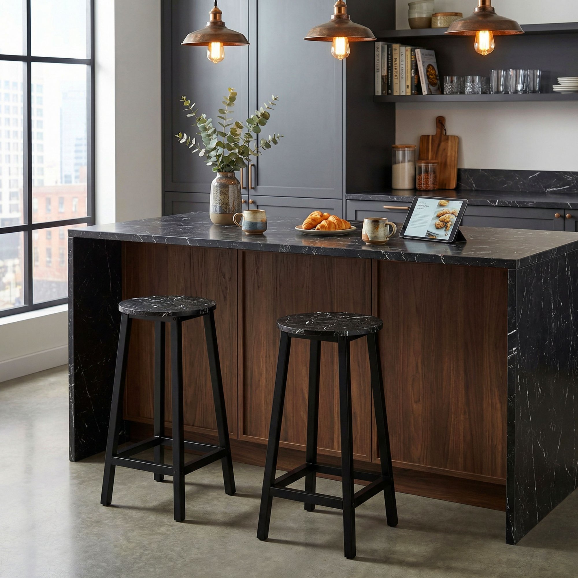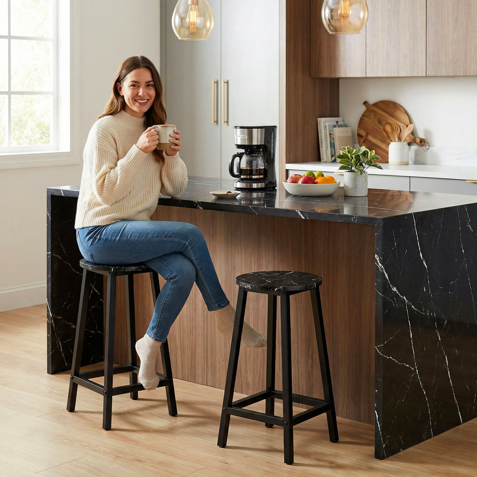 Kovová barová stolička FLINT Black - čierna / čierny mramor