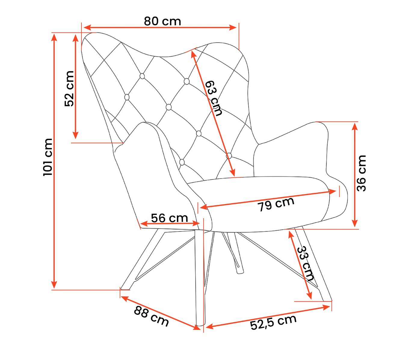 - rozmery: šírka: 80 cm, výška: 101 cm, hĺbka: 88 cm