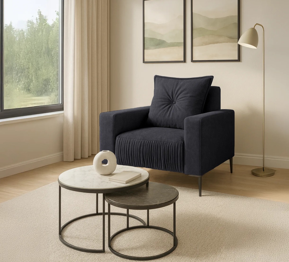 Kreslo RITA je skvelou voľbou pre tých, ktorí hľadajú moderný a štýlový kus nábytku do svojho interiéru. K dispozícii je v niekoľkých zaujímavých farbách, ktoré dokonale ladia s moderným designom. Ihlové nohy v čiernej farbe dodávajú kreslu sofistikovaný vzhľad a skvele kontrastujú s látkou, ktorá je použitá na poťahovanie sedadla a chrbtovej opierky. Zadná strana kresla je potiahnutá látkou, ktorá ladí s farbou celku a tvorí tak harmonický celok.