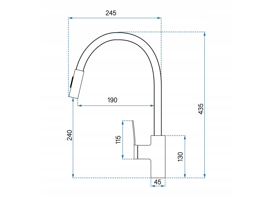 Praktickým pomocníkom sa stane výsuvná koncová hlavica s hadicou , vďaka ktorej môžete ľahko opláchnuť napríklad zeleninu alebo drez pri umývaní. V tele koncovky je integrovaný aj prepínač, ktorým si volíte medzi sprchou alebo prúdom vody.