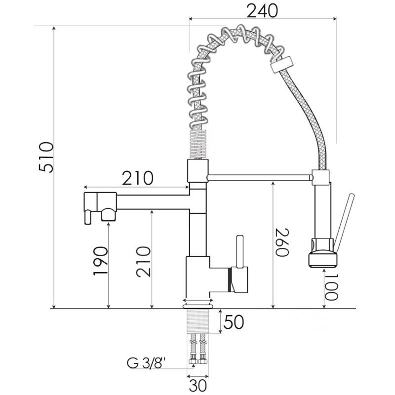 Funkciami je batéria podobná tým v profesionálnych kuchyniach. Flexibilný krk ľahko vycvaknete z háčika a môžete s ním voľne pohybovať na všetky strany. Na koncovke vývodu nájdete stláčaciu spúšť na spustenie výtoku vody. To napomôže k veľkej úspore vody. Pre prípad napúšťania hrnca či drezu slúži výtokový kohútik s vlastným ventilom.