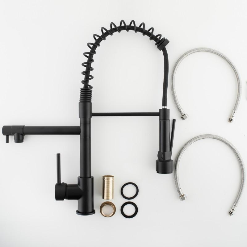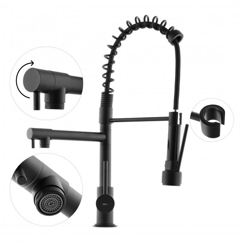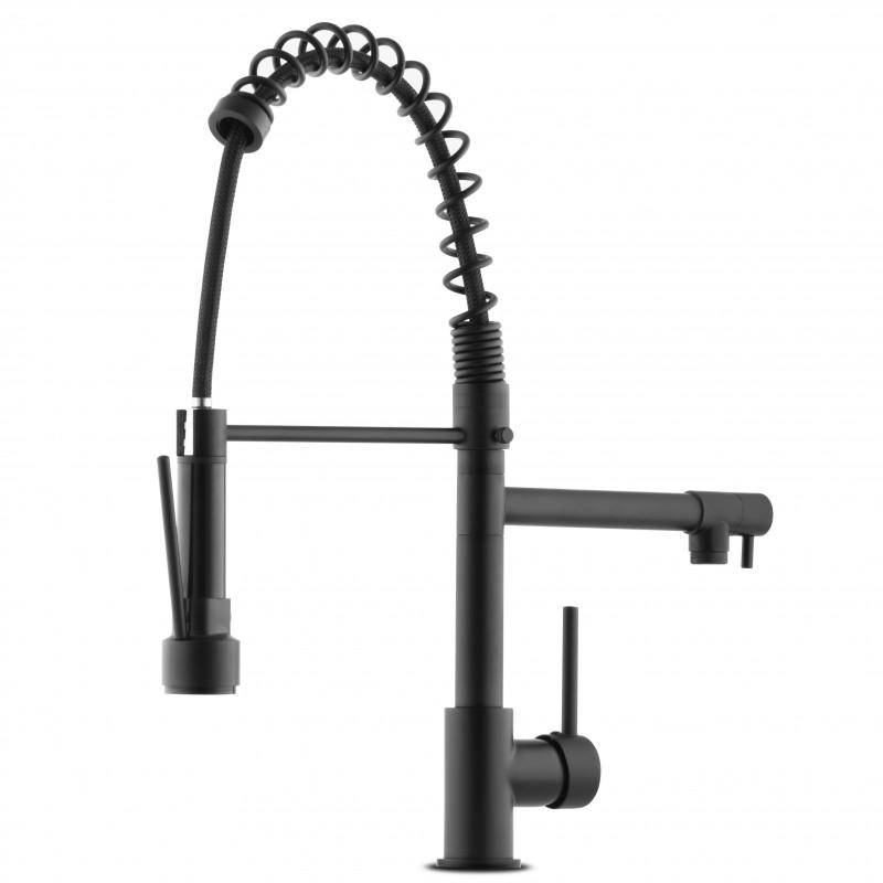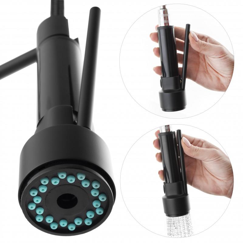 Telo modernej vodovodnej batérie je vyrobené z mosadze s čiernou matnou povrchovou úpravou. Táto technika chráni batériu pred poškriabaním a koróziou. Batéria sa hodí do každej kuchyne a je možné ju bez problémov usadiť do otvoru v doske aj dreze.