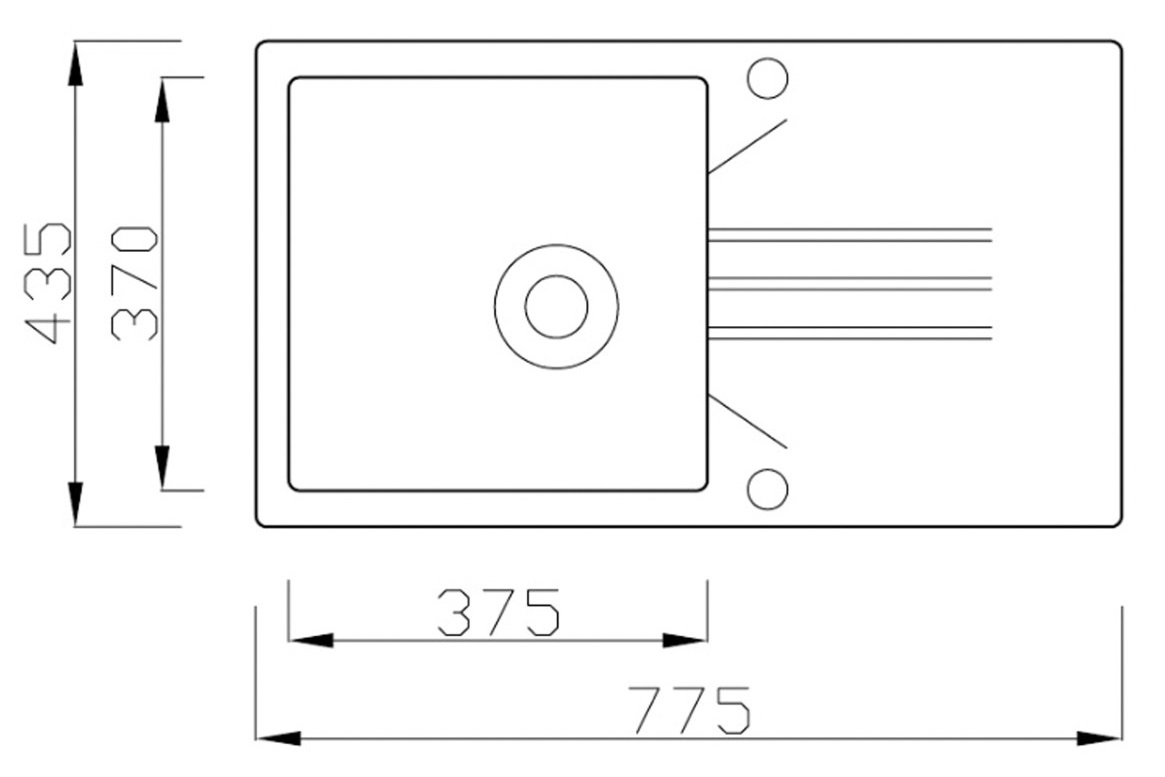 - 2 otvory pre inštaláciu príslušenstva (napríklad vodovodné batérie, dávkovače umývacích prostriedkov, ...)