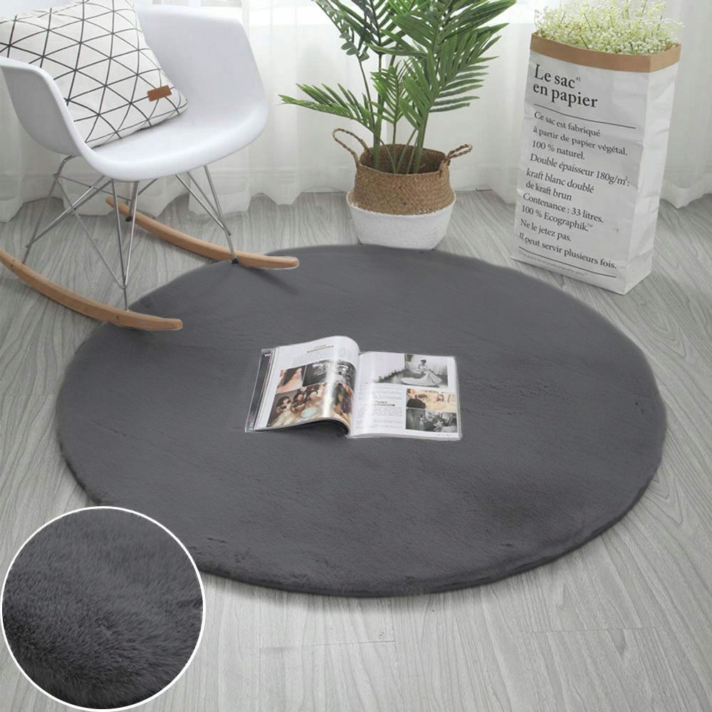 Okrúhly koberec RABBIT - 100 cm - tmavo šedý - imitácia králičie kožušiny