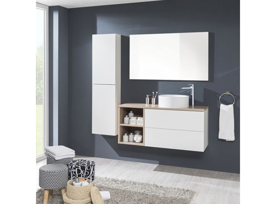 Séria kúpeľňového nábytku Aira umožňuje kombinovať horné aj spodné skrinky do mnohých rôznych variantov. Vytvoriť tak je možné ako zložité kombinácie do veľkých kúpeľní, tak minimalistické riešenie v modernom dizajne. Otváranie dvierok je riešené systémom push-open, teda otváraním bez úchytiek. Skrinka je rozdelená štyrmi policovými doskami. Skrinky sú dodávané zmontované a sú určené na zavesenie.