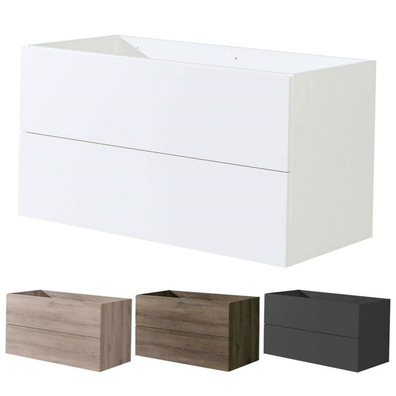 Kúpeľňová skrinka má dve priestranné zásuvky a je možné ju kombinovať s umývadlom, prípadne kúpeľňovou doskou na skrinku.