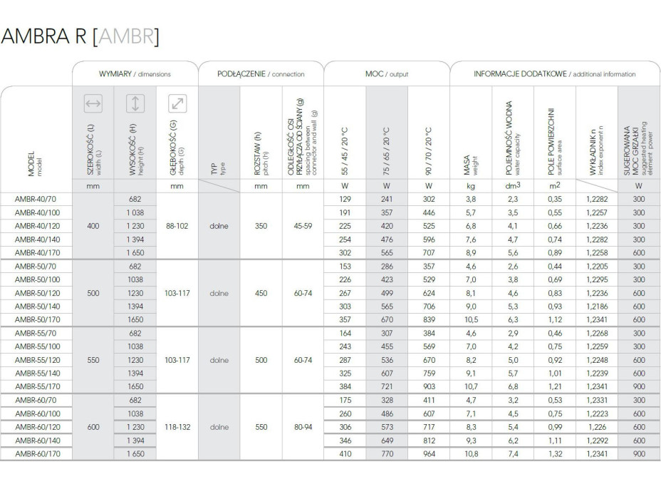 Kúpeľňový radiátor AMBRA R je vykurovací rebrík s klasickým dizajnom s rebrovaním do oblúka a zaobleným rámom. Radiátory do kúpeľne sú vhodné na pripojenie do klasického systému vykurovania , alebo ako samostatné jednotky s vlastným napájaním vykurovacou elektrickou tyčou. Radiátor AMBRA R je dostupný v základnej farbe C35 biela lesklá . Kúpeľňový radiátor AMBRA R kompletne zmení vaše predstavy o radiátoroch ako ich poznáte. Vďaka moderným technológiám a materiálom sú radiátory do kúpeľne opatrené dokonalou antikoróznou vrstvou. Na túto vrstvu je ešte len nanášaná prášková farba. Kúpeľňový radiátor je vhodný k jedno aj dvojrúrkovým vykurovacím systémom s čerpadlom. Alebo ako samostatné vyhrievacie telesá s elektrickou vykurovacou tyčou . Radiátory majú menší objem vody, veľmi rýchlo sa zahrievajú a sú výborne regulovateľné, takže si jednoducho nastavíte tú správnu teplotu pre váš dokonalý komfort.
