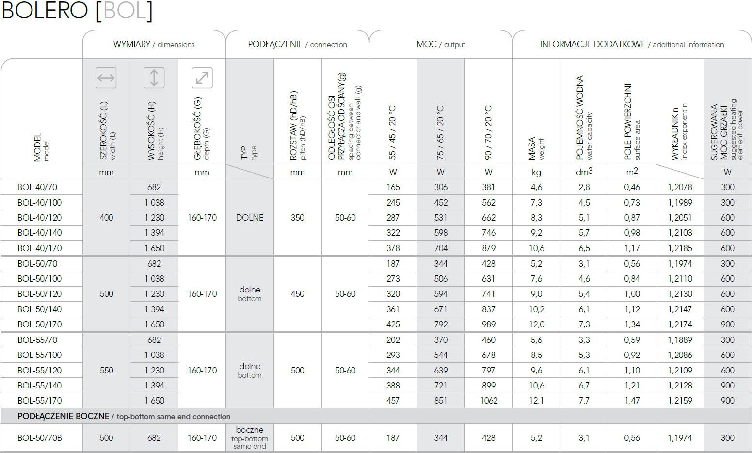 • 500 × 682 mm (bočné pripojenie), výkon 344 W (vykurovacia tyč 300 W)