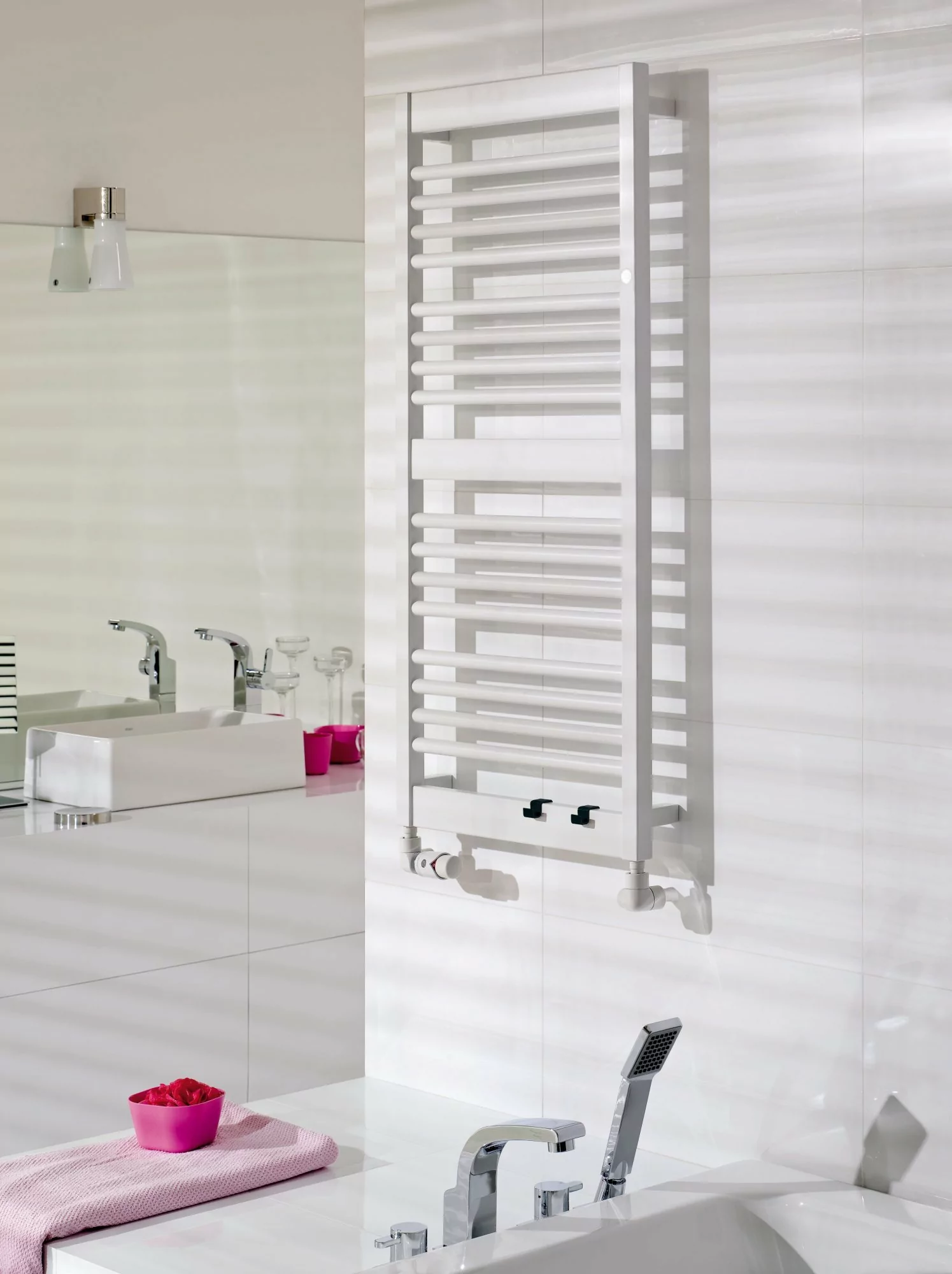 Kúpeľňový radiátor je vhodný k jedno aj dvojrúrkovým vykurovacím systémom s čerpadlom. Alebo ako samostatné vyhrievacie telesá s elektrickou vykurovacou tyčou. Radiátory majú menší objem vody, veľmi rýchlo sa zahrievajú a sú výborne regulovateľné, takže si jednoducho nastavíte tú správnu teplotu pre váš dokonalý komfort.