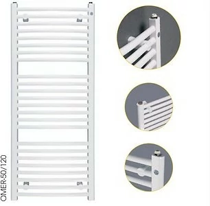 Kúpeľňový radiátor OMEGA R. Vykurovací rebrík s klasickým dizajnom s rebrovaním do oblúka a zaobleným rámom. Radiátory do kúpeľne sú vhodné na pripojenie do klasického systému vykurovania , alebo ako samostatné jednotky s vlastným napájaním vykurovacou elektrickou tyčou. Radiátor OMEGA R je dostupný iba v základnej farbe C35 biela lesklá .