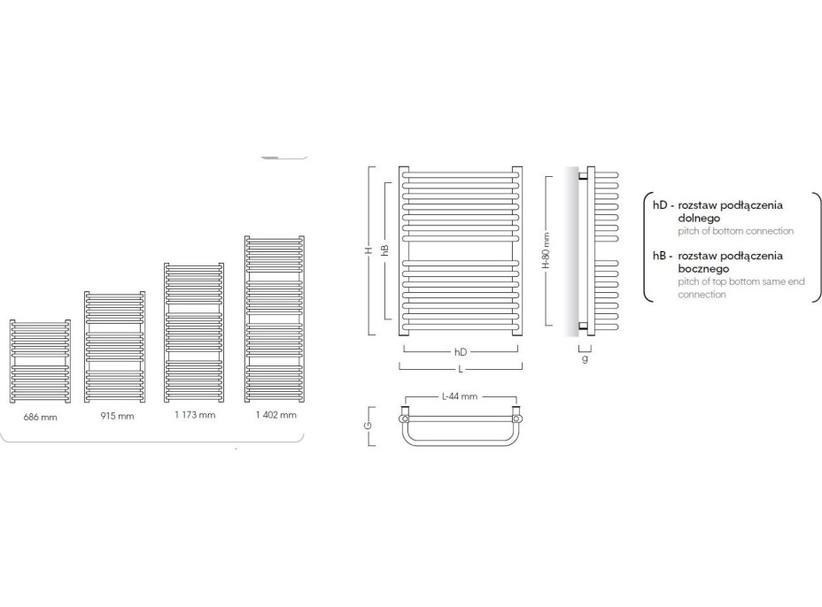 • 400 × 686 mm (bočné pripojenie), výkon 474 W (vykurovacia tyč 300 W)