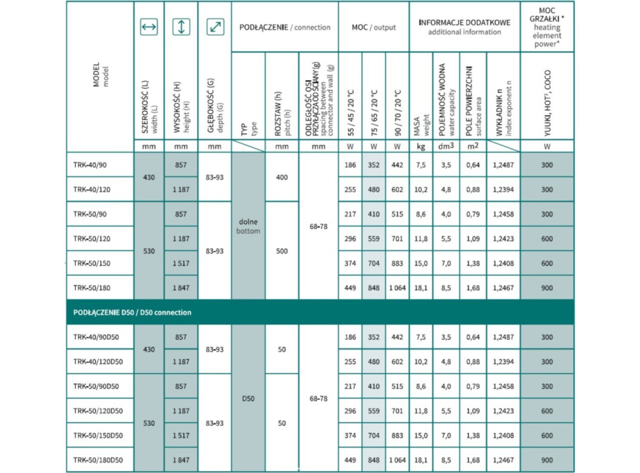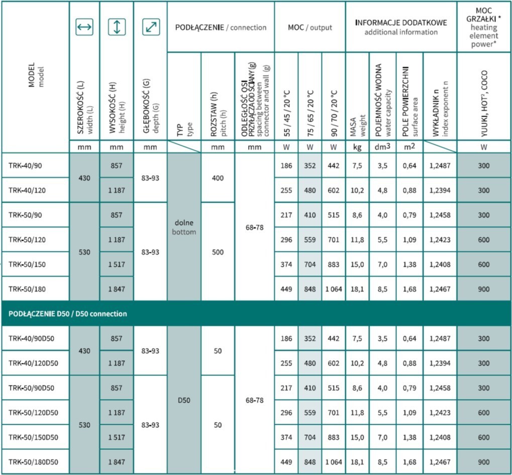 - Pripojenie radiátora: Klasické (spodné), 430 × 857 mm, výkon 352 W, 430 × 857 mm, výkon 352 W, Stredové 50 mm, Klasické (spodné), 430 × 1187 mm, výkon 480 W, 430 × 1187 mm 480 W, Stredové 50 mm, Klasické (spodné), 530 × 857 mm, výkon 410 W, 530 × 857 mm, výkon 410 W, Stredové 50 mm, Klasické (spodné), 530 × 1187 mm, výkon 559 W, 530 × 1187 mm, výkon 559 W, Stredové 50 mm, Klasické (spodné), 530 × 1517 mm, výkon 704 W, 530 × 1517 mm, výkon 704 W, Stredové 50 mm, Klasické (spodné), 530 × 1848 mm, výkon W, 530 × 1847 mm, výkon 848 W, Stredové 50 mm