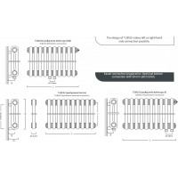 Radiátor je dodávaný ako s bočným , tak aj so spodným pripojením D50 . Pri spodnom D50 je pripojenie štandardne umiestnené v strede radiátora , ale je možné aj prípadne nechať vyrobiť s umiestnením na pravej alebo ľavej strane radiátora (nutné uviesť do objednávky)