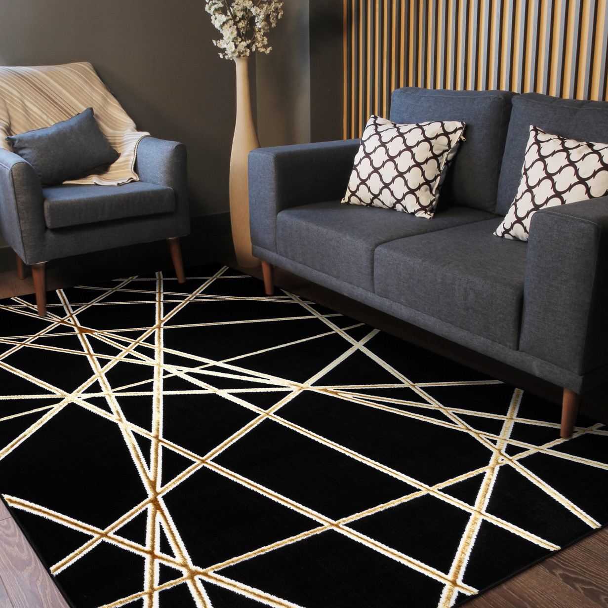Koberec Allure 1964 black/gold je ukážkou moderného dizajnu v tej najštýlovejšej podobe. Čierny podklad zdobia zlaté línie, ktoré sa krížia v dynamickom geometrickom vzore pripomínajúcom svetelnú sieť. Výsledkom je odvážny a pôsobivý dizajn, ktorý interiéru dodá energiu, šmrnc a nádych luxusu. Koberec je vyrobený z polypropylénu a polyesteru, čo mu zaisťuje vysokú odolnosť aj príjemne mäkký povrch. Dve výšky vlasu vytvárajú jemný 3D efekt, ktorý zvýrazňuje geometrické línie a dodáva kobercu hĺbku. Certifikácia OEKO-TEX zaručuje zdravotnú nezávadnosť. Allure sa perfektne hodí do moderných obývacích izieb a pracovní, kde sa stane neprehliadnuteľným stredobodom, alebo do spální, kde vnesie elegantný kontrast a atmosféru súčasného luxusu. Výška vlasu: 10 mm.