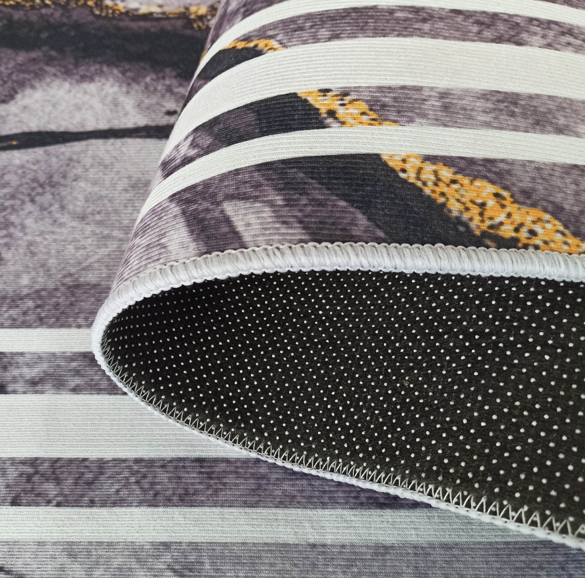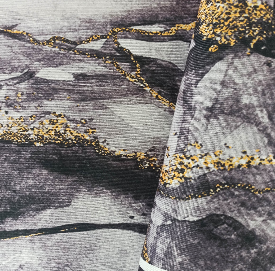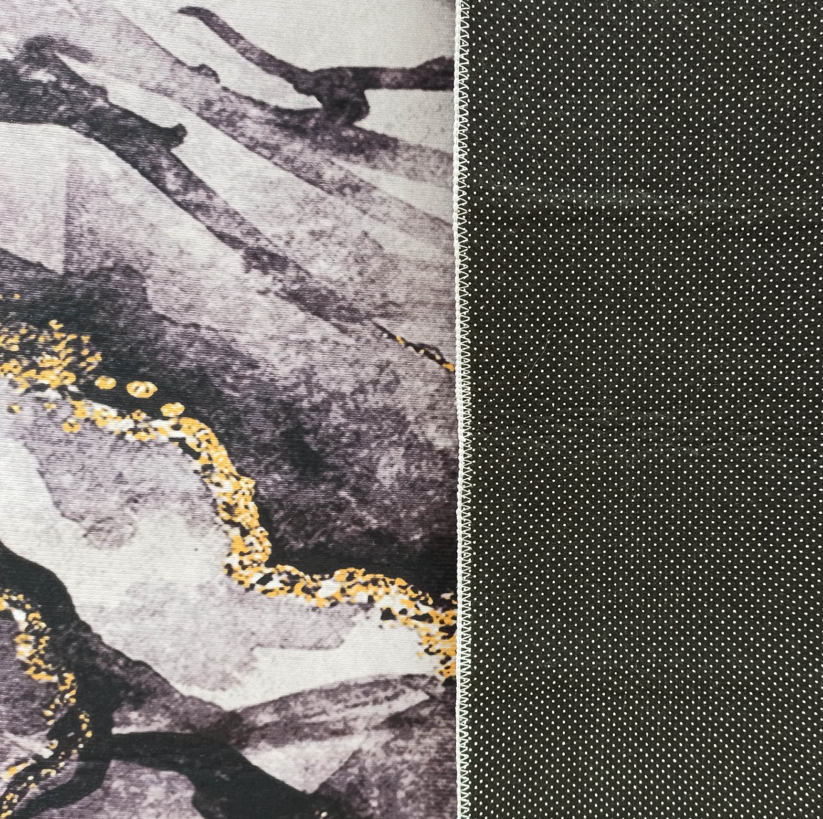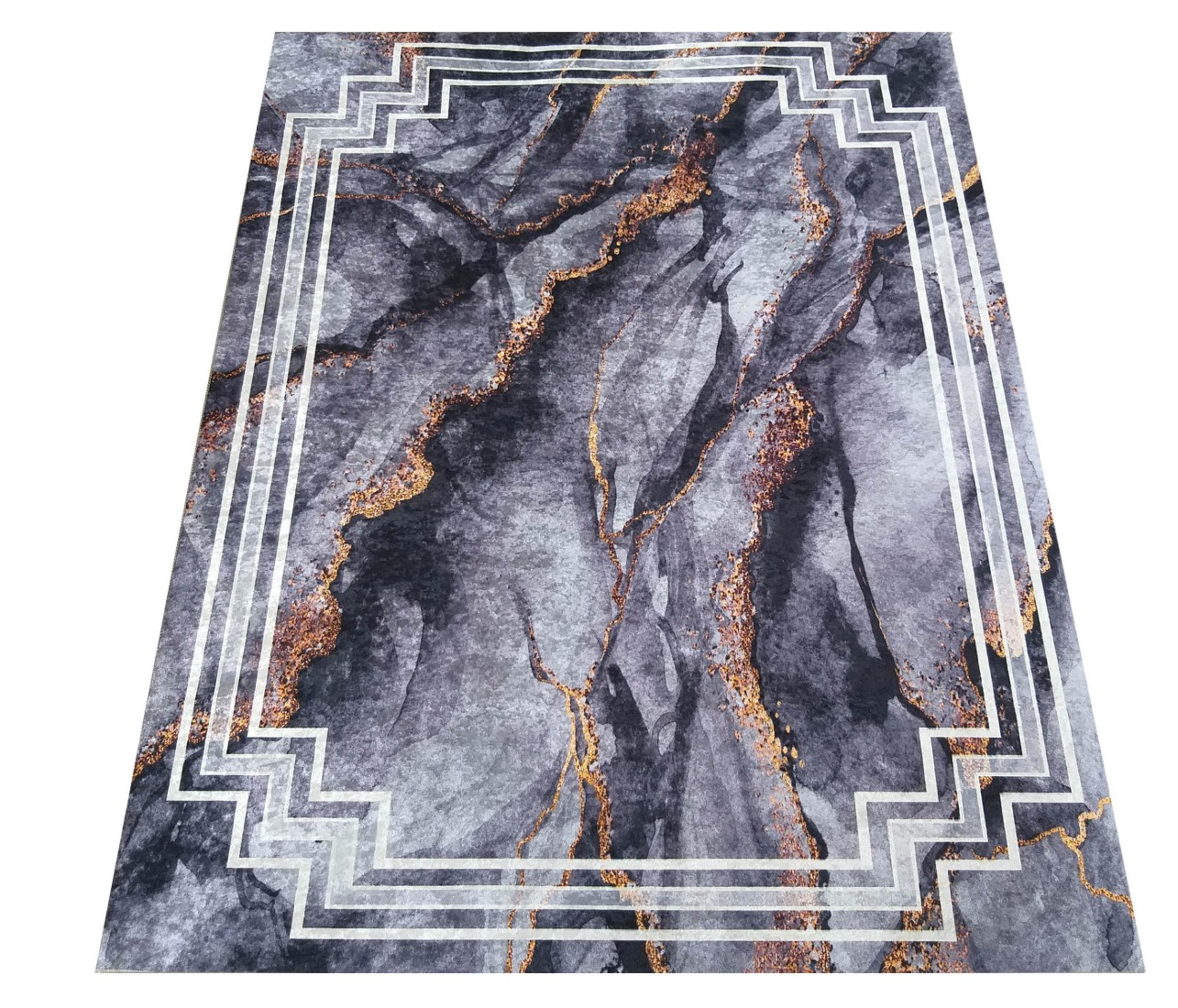Tmavosivý moderný koberec s veľmi módnym vzorom inšpirovaným kresbou kameňa. Sýto šedé a zlaté akcenty mu dodávajú jedinečný, elegantný charakter. Koberec HONOR Rock skvele doplní každý interiér, či už klasický, alebo moderný. Je stvorený aj pre štýlovú obývaciu izbu, ale nájde si cestu aj do krásnej spálne alebo reprezentatívnej jedálne. Zlato zvýraznené "polstrovanie" a geometrické línie sú receptom na útulný, harmonický a pútavý interiér. Koberec má protišmykový podklad, takže sa nešmýka po podlahe a môžete ho ľahko položiť na panely, dosky alebo keramickú dlažbu. Je vyrobený z kvalitného polyesteru - je trvanlivý, odolný voči mechanickému poškodeniu a je možné ho prať na 30 stupňov. Svoj krásny vzhľad si zachová po veľmi dlhú dobu. Nebude meniť farbu ani sa deformovať.