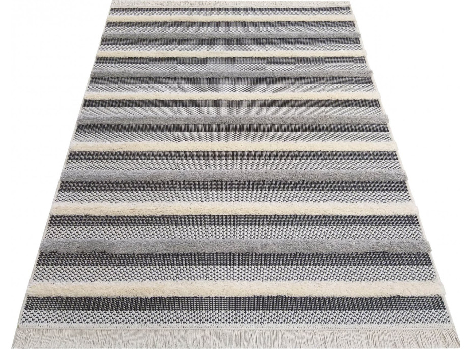 Geometrické, harmonické vzory nikdy neomrzia, takže náš koberec so strapcami osloví milovníkov jednoduchých, minimalistických interiérov a dokonale zladených doplnkov. Model Irpino má obdĺžnikový tvar a je na kratšej strane zakončený elegantnými svetlými strapcami. Koberec vyrobený zo 100% polypropylénu bude dobre fungovať ako koberec do interiéru aj na terasu. Vzor koberca tvorí pruhy v troch tlmených farbách, ktoré vďaka použitiu vyššieho vlasu miestami pôsobia trojrozmerne. Jeho špičková kvalita je certifikovaná spoločnosťou OEKO-TEX.