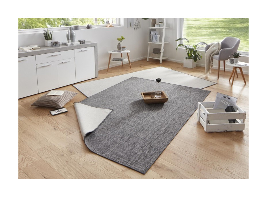 Moderné kusové koberce Twin-Wendeteppiche sú vyrobené zo 100% polypropylénu. Majú veľmi atraktívny vzhľad, ktorý zaujme na prvý pohľad. Moderný kusový koberec z kolekcie nemeckej značky Hansa Home. Koberec je obojstranný. Z jednej strany je šedý, z druhej strany je krémovo svetlý. Koberec môžete kedykoľvek otočiť a zmeniť tak design interiéru. Koberec Twin-Wendeteppiche 103097 je tiež skvelou voľbou na dozdobenie vonkajšej terasy.