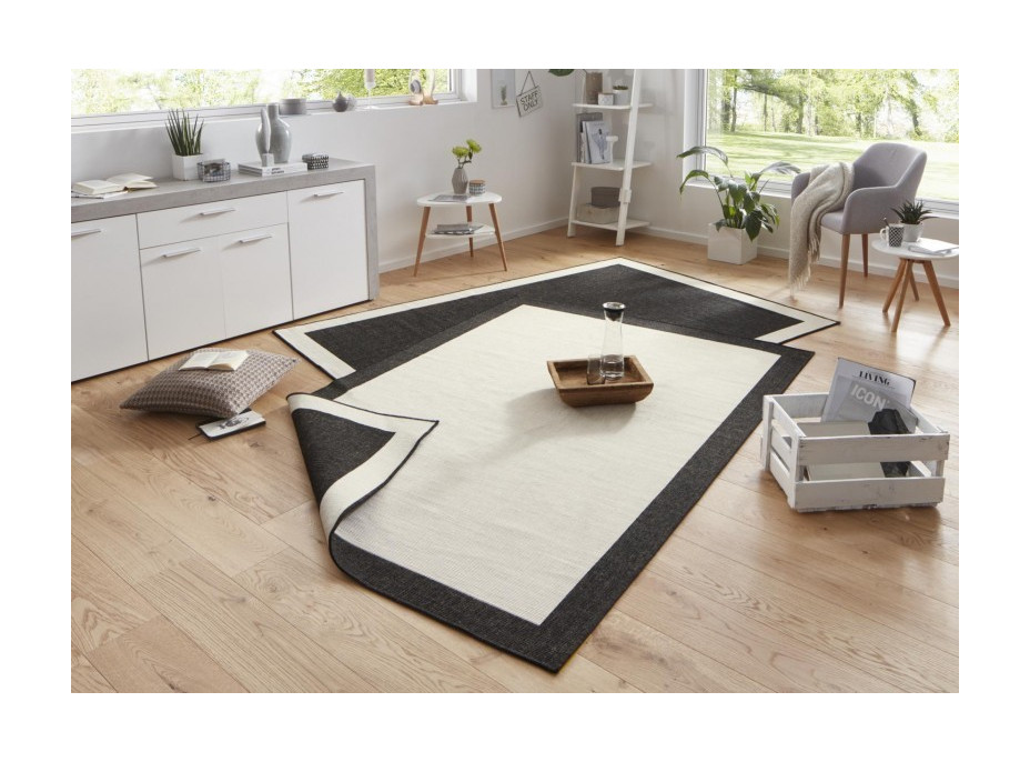 Moderné kusové koberce Twin-Wendeteppiche sú vyrobené zo 100% polypropylénu. Má veľmi atraktívny vzhľad, ktorý zaujme na prvý pohľad. Moderný kusový koberec Twin-Wendeteppiche v čierno-krémovej farbe. Koberec je obojstranný a pôsobí veľmi elegantne. Skvelá voľba napríklad do obývačky. Koberec Twin-Wendeteppiche z kolekcie nemeckej značky Hanse Home môžete použiť aj ako vonkajší koberec.