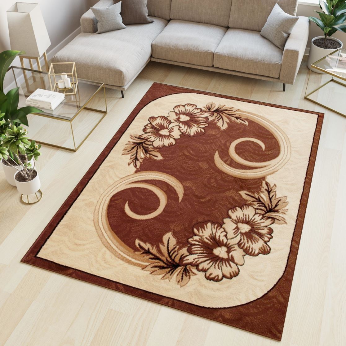 Kusový koberec ATLAS Flowers - hnedý/krémový