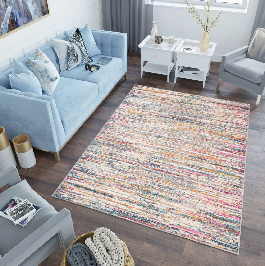 Kusový koberec AZUR static - šedý/ružový/modrý, 120x170 cm