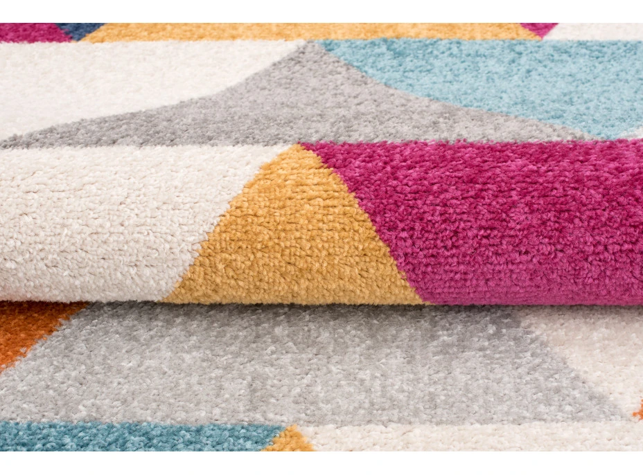 Kusový koberec AZUR trojuholníky typ D - biely / oranžový / červený / modrý