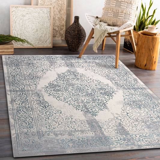Kusový koberec Core W7161 Vintage rosette blue/cream and grey