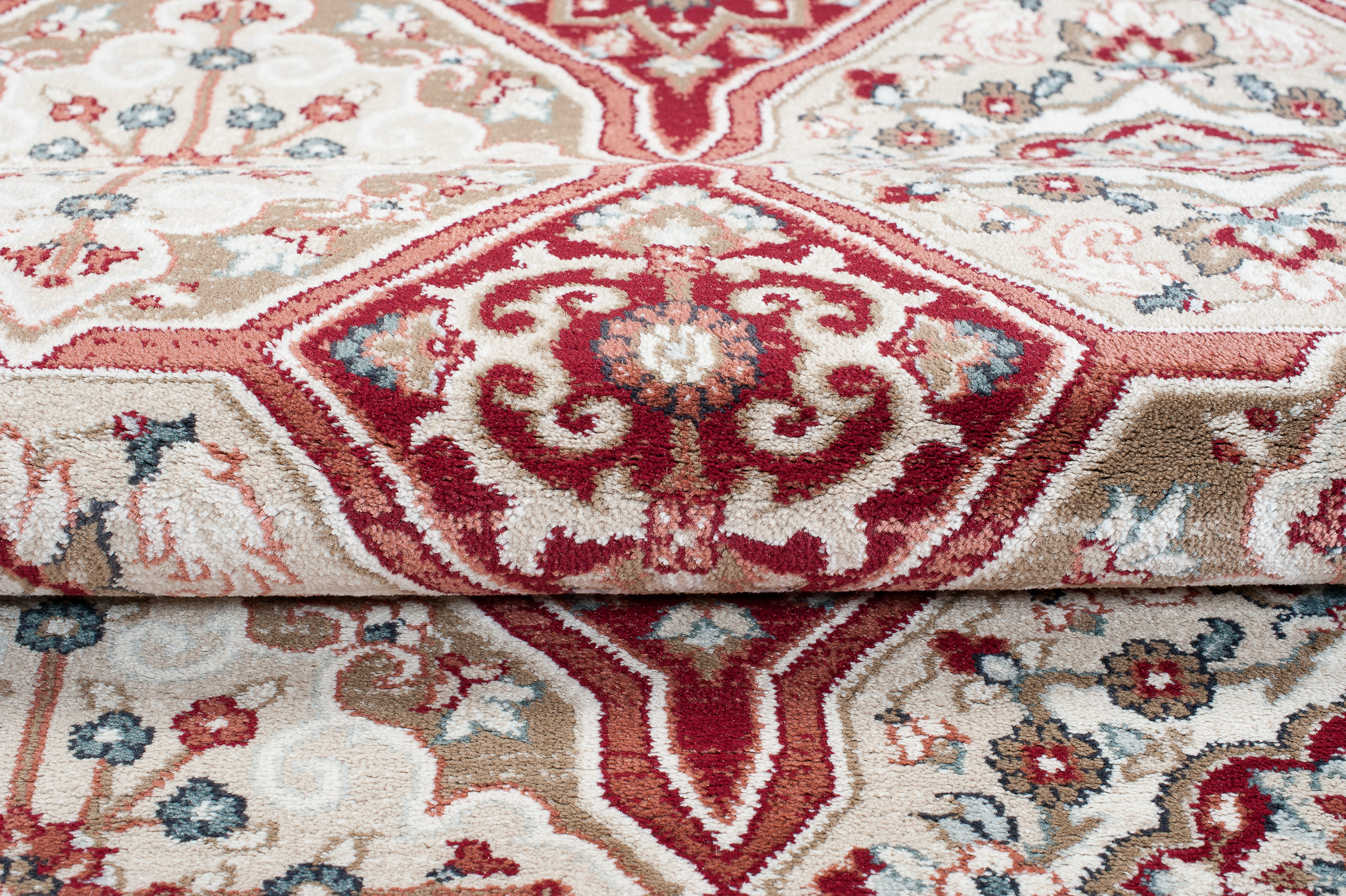 Kolekcia kobercov DUBAI zaujme klasickými vzormi tradičných perzských kobercov a vysokou kvalitou. Vlákno koberca z polypropylénu (PP) má vďaka tepelnej úprave Heat Set vynikajúcu odolnosť voči oteru, skvelú pružnosť a vďaka svojej štruktúre pripomína ručne tkané vlnené koberce. Navyše je mäkká, príjemná na dotyk a perfektne izoluje chlad od podlahy. Koberec sa pýši hmotnosťou 2250 g/m 2 pri výške 10 mm . Radí sa teda medzi veľmi kvalitné koberce s vysokou gramážou.