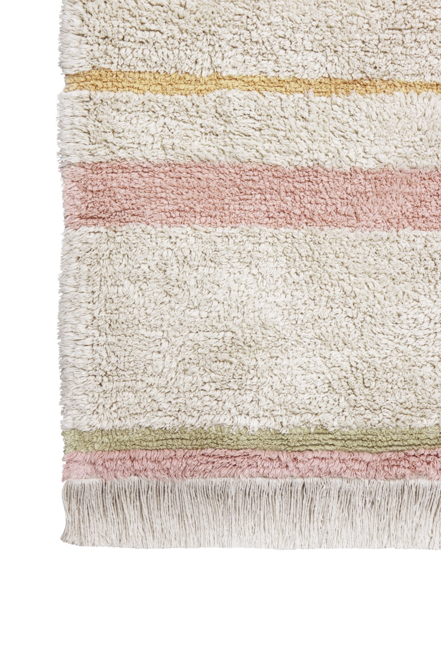 V prípade zašpinenia môžete koberce vyprať v práčke, a to jednotlivo na jemný program pri 30 °C bez bielenia a zmäkčovadiel. Použite jemný prací prostriedok. Ak má koberec strapce alebo brmbolce, zvoľte nízke otáčky. Mokré koberce nenechávajte v práčke, pretože by mohlo dôjsť k stekaniu farieb alebo vzniku škvŕn. Môžete ich sušiť v sušičke pri nízkej teplote. Pokiaľ sa na koberci objavia žmolky, je to úplne prirodzené a jedná sa o zvyšky vlákien vzniknutých pri strihaní bavlny. Keď na koberci nájdete dlhé alebo voľné nite, zastrihnite ich nožnicami, nevyťahujte ich.