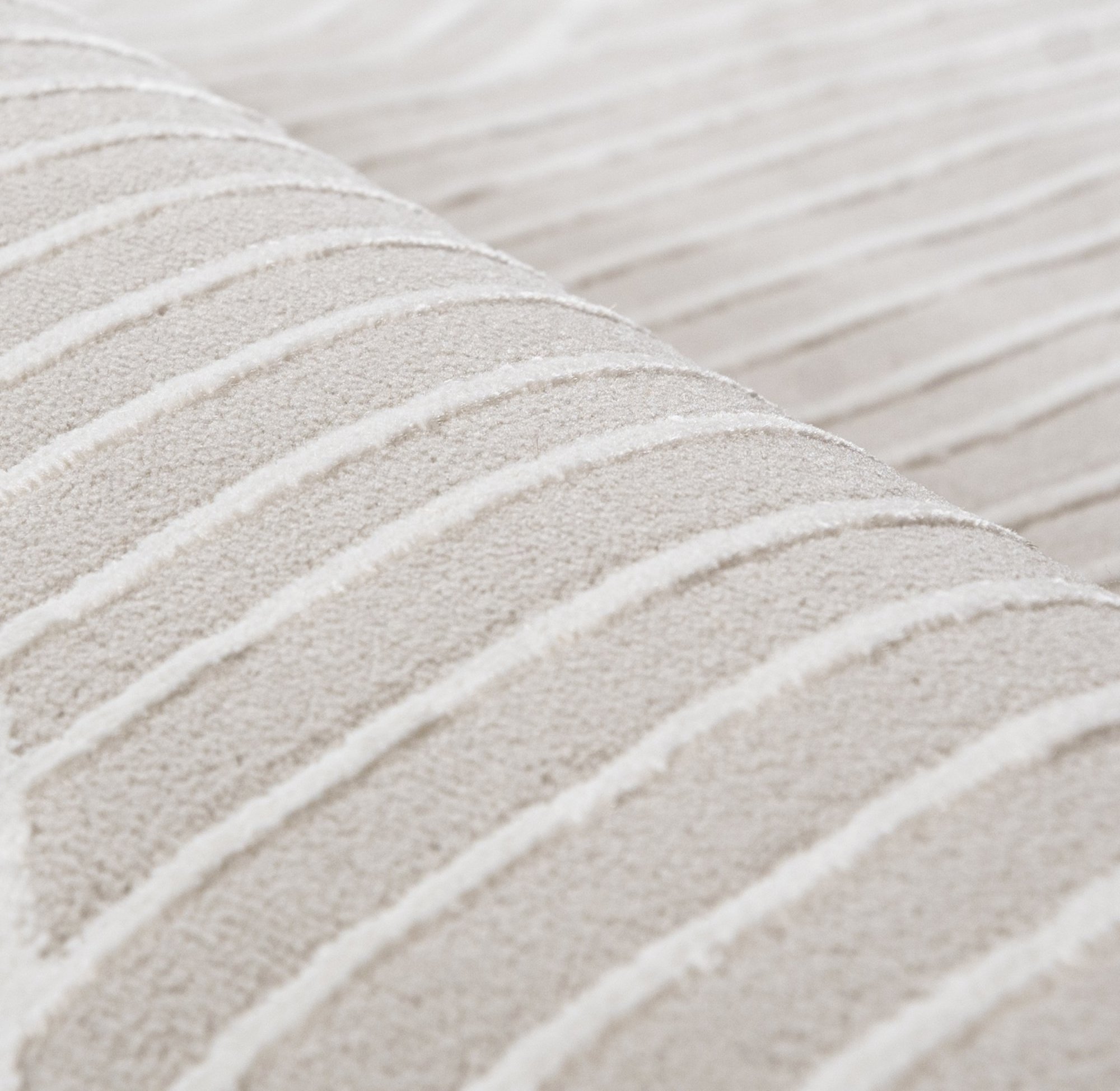 Koberce kolekcie ELLEN sa vyznačujú krátkym vlasom s 3D štruktúrou s harmonickým geometrickým vzorom pripomínajúcim zložité pieskové kresby v japonských záhradách. Koberec je vyrobený z vysoko kvalitných syntetických vlákien , vďaka čomu je odolný a ľahko sa udržuje v čistote.