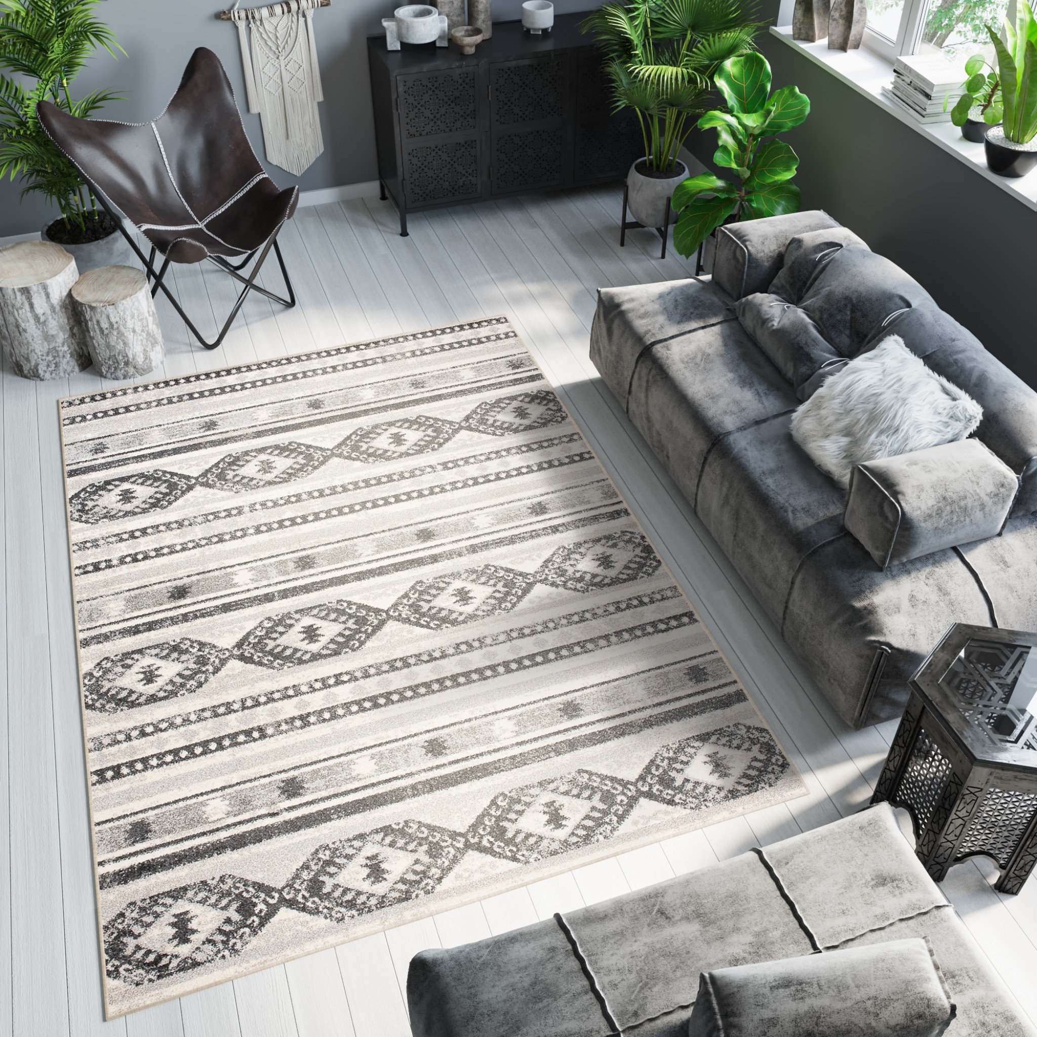 ethnic koberce sa vyznačujú silným a hustým vlasom s hustotou 2200 g / m 2 a výškou 10 milimetrov . Rúno z polypropylénového vlákna (PP) má vďaka tepelnej úprave Friese vynikajúce mäkkosť a pružnosť a vďaka svojej štruktúre pripomínajú ručne tkané vlnené koberce. Nedeformujú sa, vyznačujú sa aj vysokou odolnosťou proti oderu a ľahko sa čistí. Ethnic koberce sú celá rada štýlových kobercov vyznačujúcich sa moderným geometrickým dizajnom v tlmených farbách šedej, béžovej, hnedej, zelenej a modrej, Sú k dispozícii v celej škále veľkostí. Skvele sa osvedčí v obývacej izbe alebo spálni, kde budú skvelým dizajnovým doplnkom.