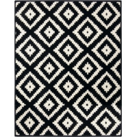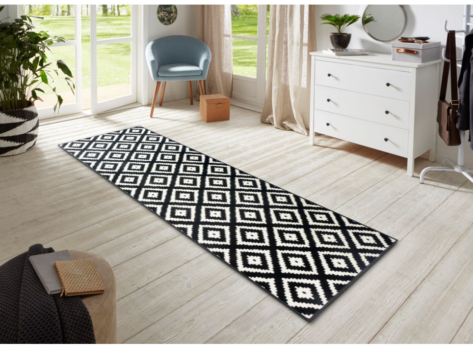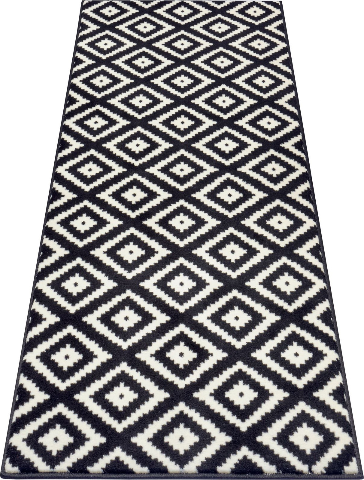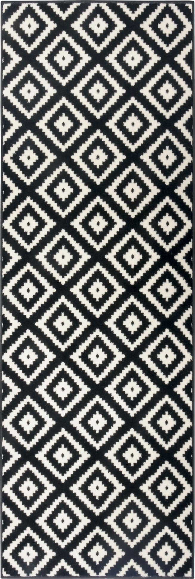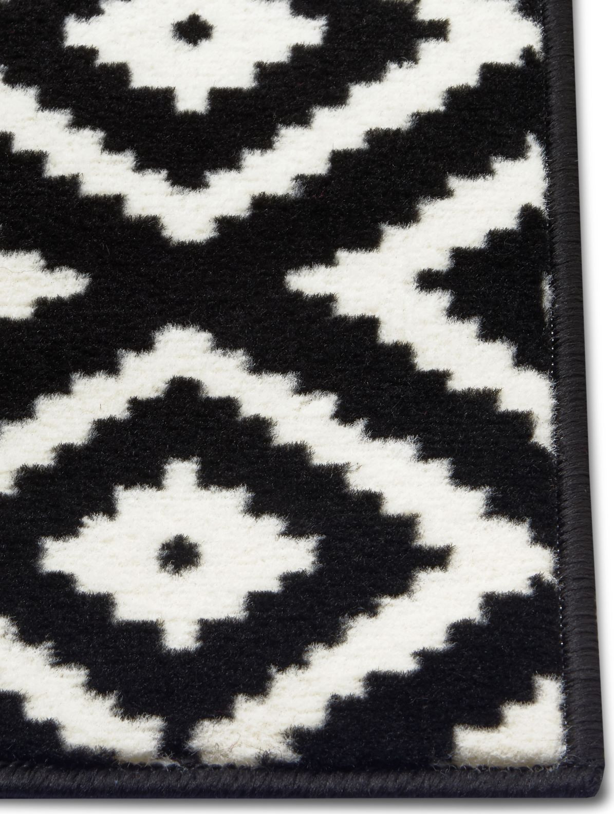 Moderný koberec v kontrastnej čierno-bielej farebnej kombinácii, ktorý svojim pútavým geometrickým motívom ozvláštni Váš interiér. Stane sa dominantou každej obývačky alebo spálne. Na jeho výrobu bol použitý pevný polypropylén, čo je odolný a ľahko udržateľný materiál.