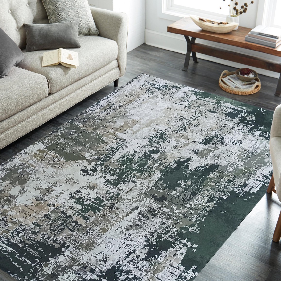 Krásny koberec s módnym stareným vzorom v jemných šedozelených tónoch je ideálnou voľbou pre štýlové boho, loftové alebo scandi interiéry. Zvoľte tento model koberca, ak hľadáte jedinečný nápad do obývačky, spálne, jedálne alebo kuchyne. Protišmykový koberec z kolekcie HONOR sa vyznačuje zaujímavým motívom obnosenej látky - jedným z najmódnejších vzorov súčasnosti! Materiálom tohto koberca je vysoko kvalitný polyester - materiál, ktorý je podobný prírodným tkaninám, ale je oveľa odolnejší proti poškodeniu a oderu. Veľkou prednosťou koberca je, že ho možno prať v práčke. Koberec má protišmykový podklad, takže sa bude dobre vynímať nielen na drevených doskách alebo parketách, ale aj na keramických dlaždiciach.