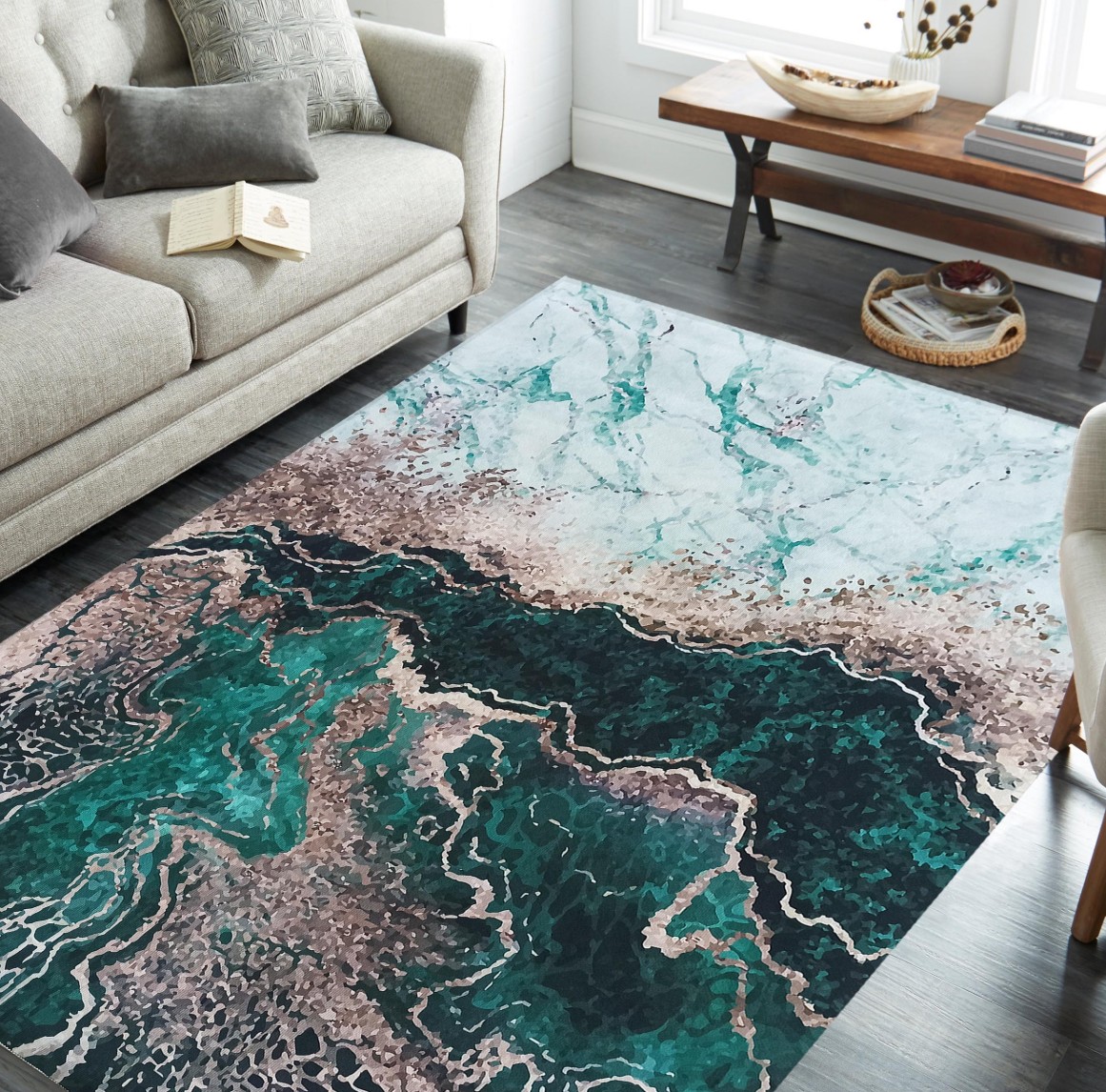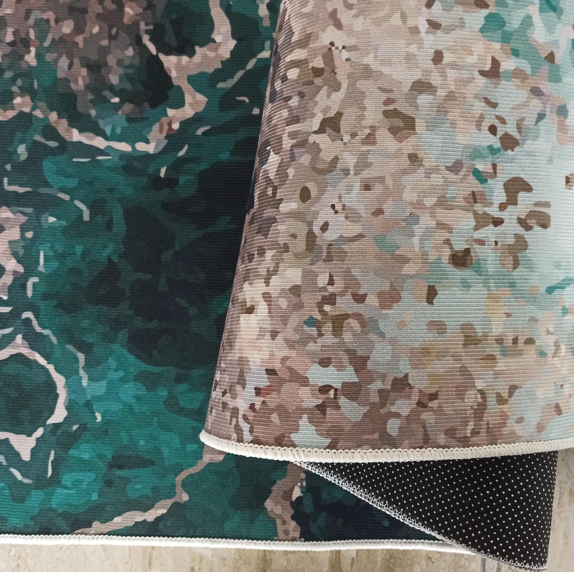 Elegantný a nápadný koberec - moderný vzor pripomínajúci morské pobrežie a sýta zlatozelená farba sú jeho najväčšími prednosťami. Vyberte si tento model do štýlovej obývačky, jedálne alebo spálne. Je protišmykový a veľmi odolný, takže bude dobre fungovať aj v intenzívne využívaných priestoroch. Koberec vyzerá efektne a zároveň štýlovo. Skvele bude vyzerať s tmavo zelenou pohovkou, najmä s trendy velúrovým čalúnením. Hodí sa tiež k zlatým a mosadzným doplnkom, šedej, bielej a zemitým farbám. Obdĺžnikový protišmykový koberec je vyrobený z polyesteru a je k dispozícii v niekoľkých veľkostiach. Ľahko si tak môžete vybrať ideálny model do miestnosti akejkoľvek veľkosti.