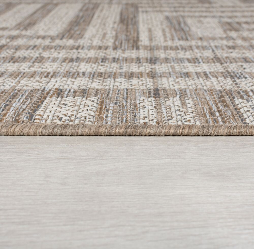 Odolné koberce LIPARI od britskej značky Flair Rugs, ktoré obstoja nielen v domácnosti, ale aj v exteriéri. To zaisťuje pevný výrobný materiál - polypropylén. Koberce navyše majú veľmi krátky vlas (3 mm). V kombinácii s odolnosťou proti poveternostným vplyvom a UV žiareniu sa jedná o skvelé doplnky na terasách a balkónoch. Neklaďte koberce na hrubé alebo ostré povrchy, aby nedošlo k ich odreniu alebo prepichnutiu. Veľkou prednosťou je ľahká údržba - koberce môžete vysávať alebo umyť vodou. Ďalej sú obšité po dlhších stranách a majú pútavé geometrické vzory.Vlastnosti