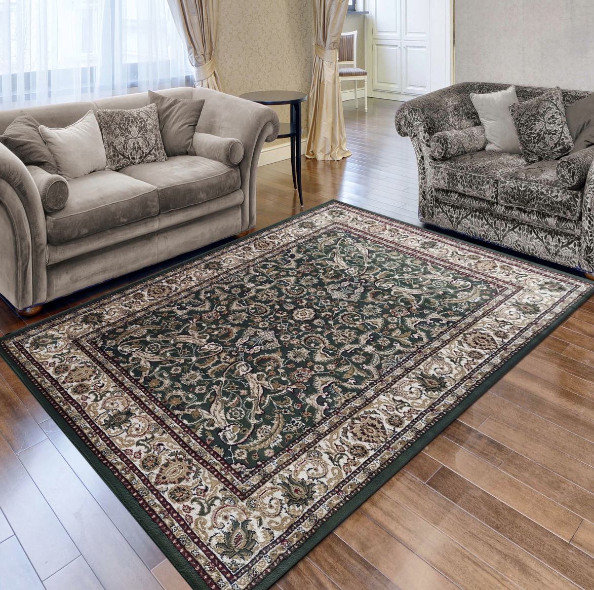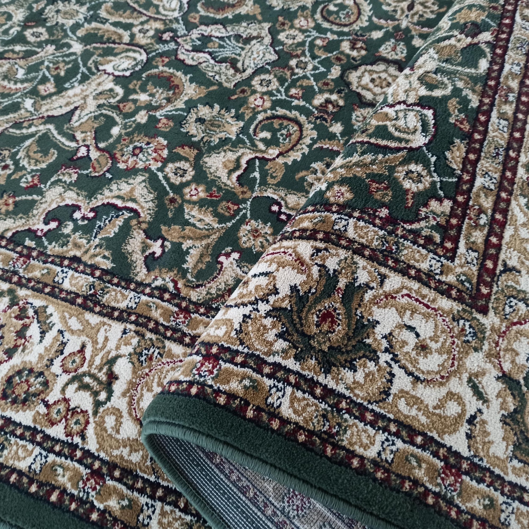 Reprezentatívny koberec z kolekcie NOBLE nájde svoje dokonalé miesto v luxusných interiéroch. Je ideálnou voľbou pre obývacie izby, spálne alebo exkluzívne kancelárie. Vzorovaný koberec v tmavo zelenej farbe oživí každý interiér a dodá mu elegantný charakter. Bohatý vzor je zvýraznený na pozadí krásneho odtieňa zelenej farby. Koberec je vyrobený z materiálov najvyššej kvality, ktoré sú zárukou, že koberec bude slúžiť dlhé roky.