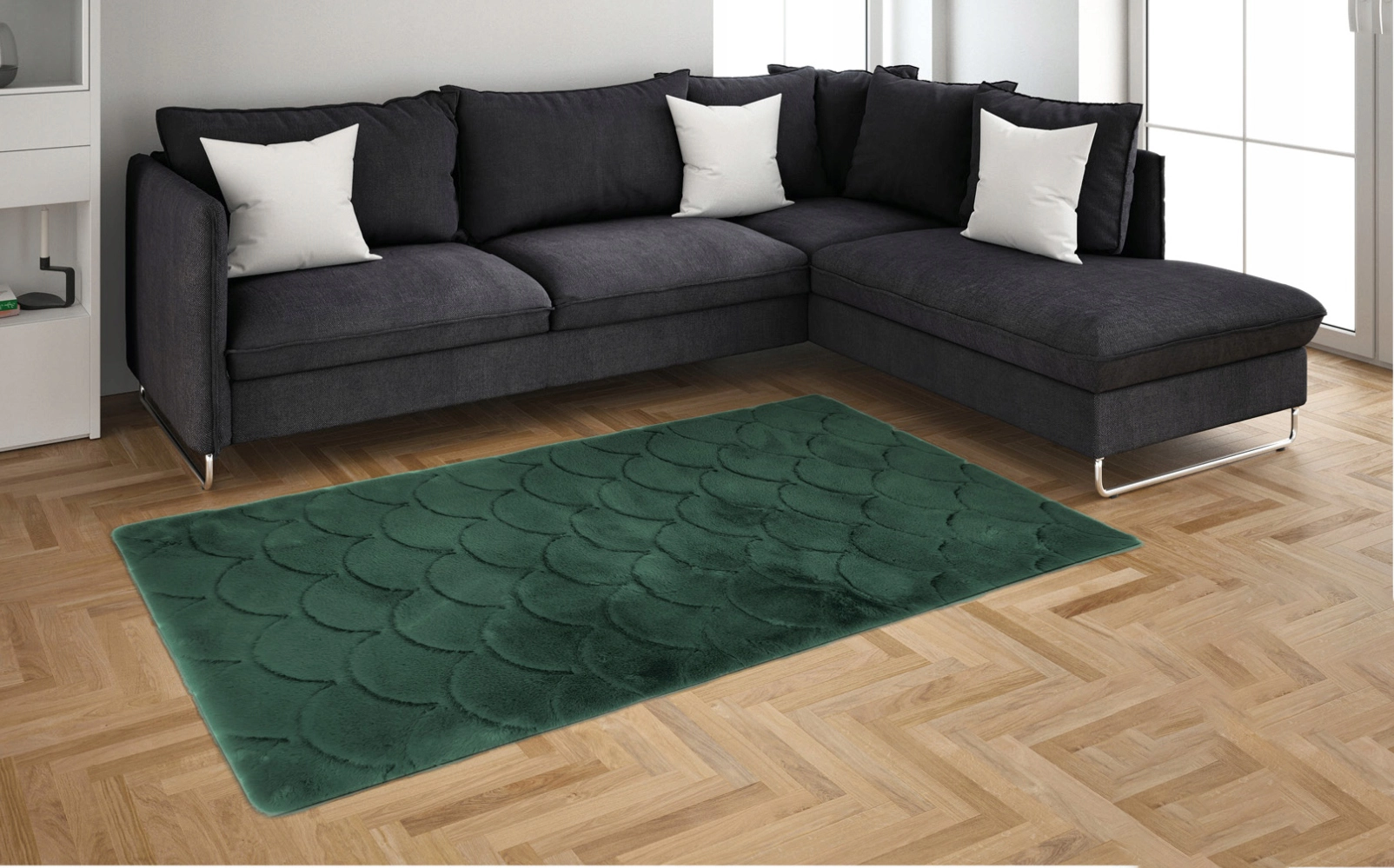 Kusový koberec OSLO TX s vlnami - tmavo zelený - imitácia králičej kožušiny