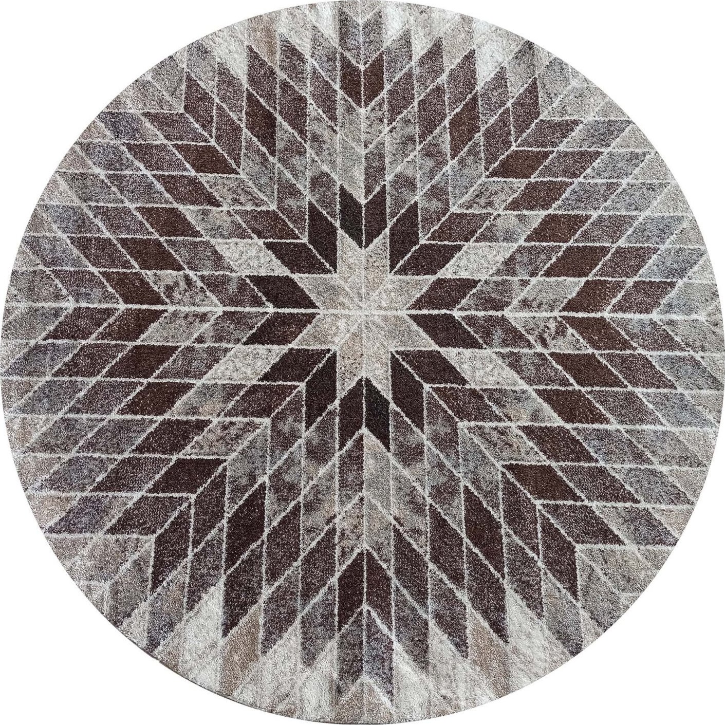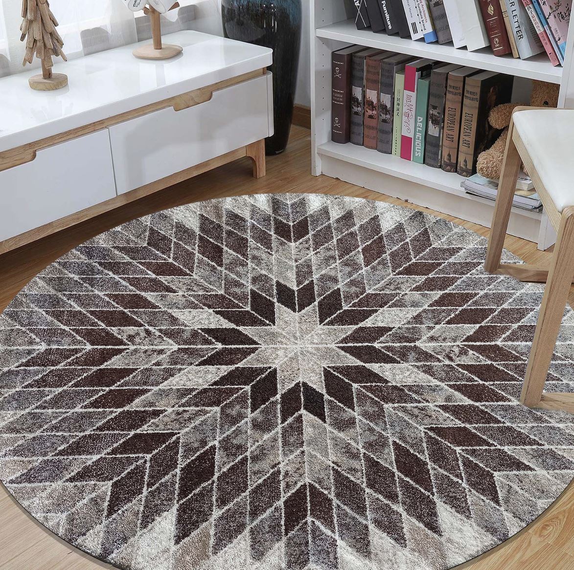Moderný dizajn inšpirovaný prírodnými motívmi v odtieňoch béžovej farby sa hodí do moderných interiérov v prírodných farbách: biela, šedá, hnedá, zelená, ladí s detailmi dreva, kovu, kameňa, prírodných látok, skla. Zámerom dizajnérov je navodiť dojem pokoja a harmónie a zároveň interiér zatepliť. Tento okrúhly koberec do obývacej izby poskytuje pohodlie a útulnosť nohám, tlmí a odhlučnú miestnosť. Moderný koberec z polypropylénovej priadze má elastické vlákna s vysokou odolnosťou proti oderu, nenasiakavá vlhkosť, ľahko sa čistí. Vďaka technológii Heat Set Frise sa jedná o mäkký, jemný, antistatický a hustý koberec.