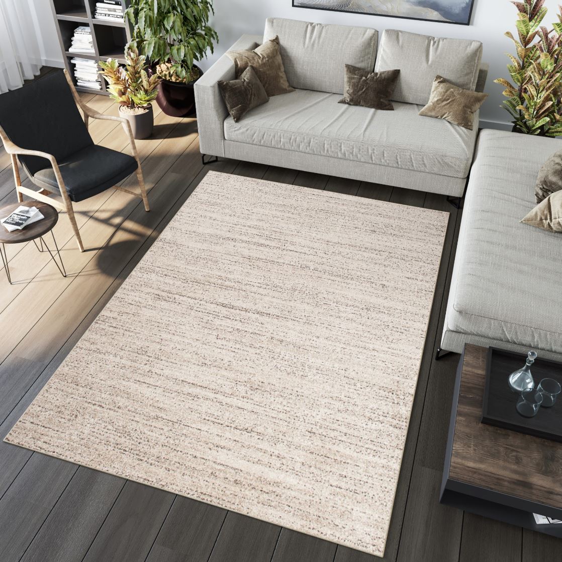 Kusový koberec SARI Mono - krémový/hnědý