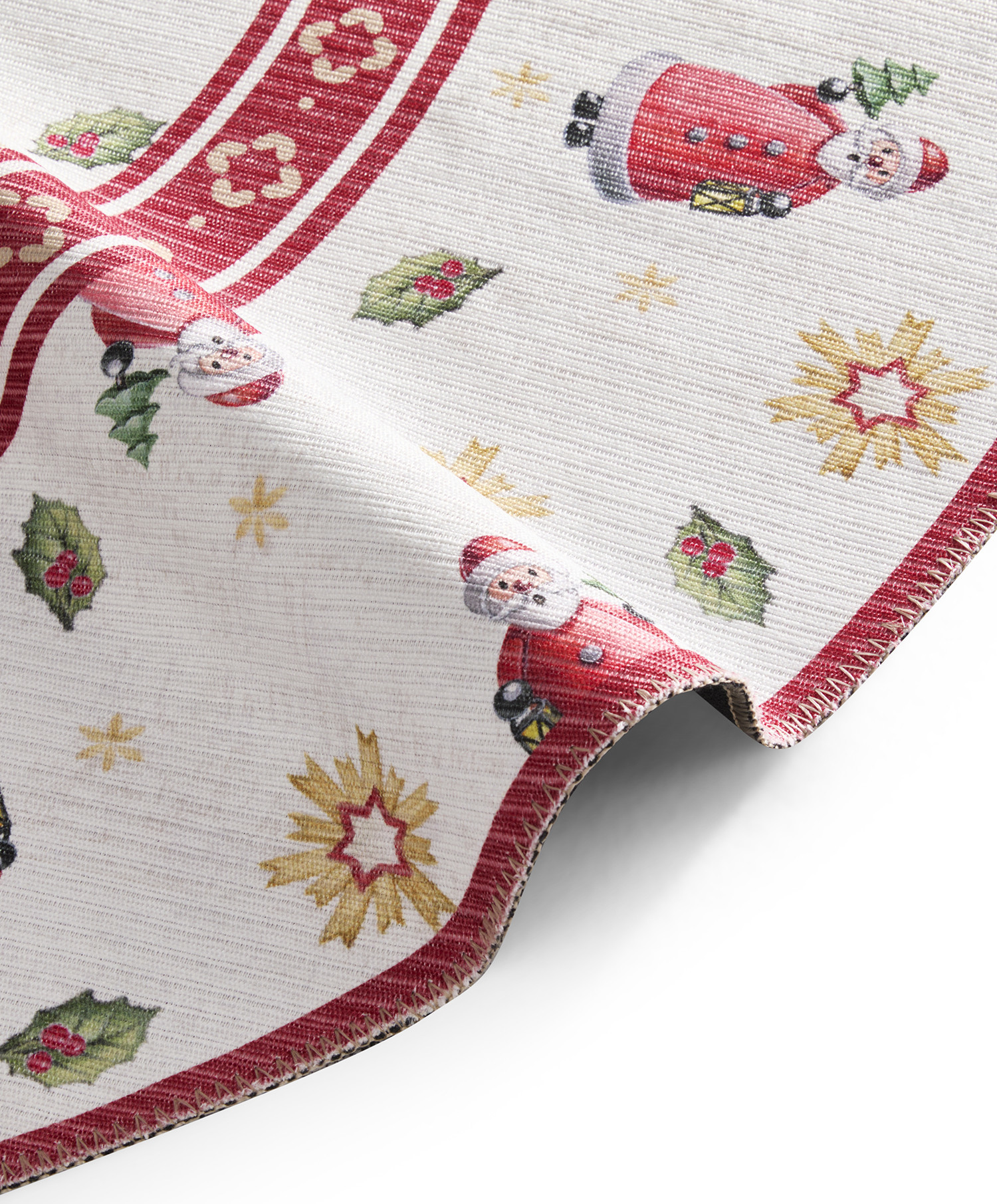 Rad kobercov Villeroy & Boch Toy's Delight prináša do interiérov kúzlo Vianoc s nádychom nostalgie. Tieto koberce sú zdobené tradičnými vianočnými motívmi, ktoré vnesú do každého priestoru slávnostnú atmosféru. Vyrábajú sa z vysoko kvalitného polyesteru, vďaka čomu sú nielen odolné, ale aj príjemné na dotyk. Ich povrch nezdobí klasický vlas, ale potlač, čo im dodáva moderný a praktický vzhľad s veľmi nízkym profilom. Praktickou vlastnosťou týchto kobercov je protišmyková rubová strana, ktorá zaisťuje, že lepšie drží na svojom mieste, a to aj na hladkých povrchoch. Sú tiež ideálne pre domácnosti s robotickými vysávačmi a vhodné na vykurované podlahy. Okraje kobercov sú po celom obvode starostlivo obšité, čo zvyšuje ich trvanlivosť a dodáva im elegantný vzhľad. V neposlednom rade majú certifikát Oeko-Tex, ktorý garantuje, že neobsahujú žiadne škodlivé látky.