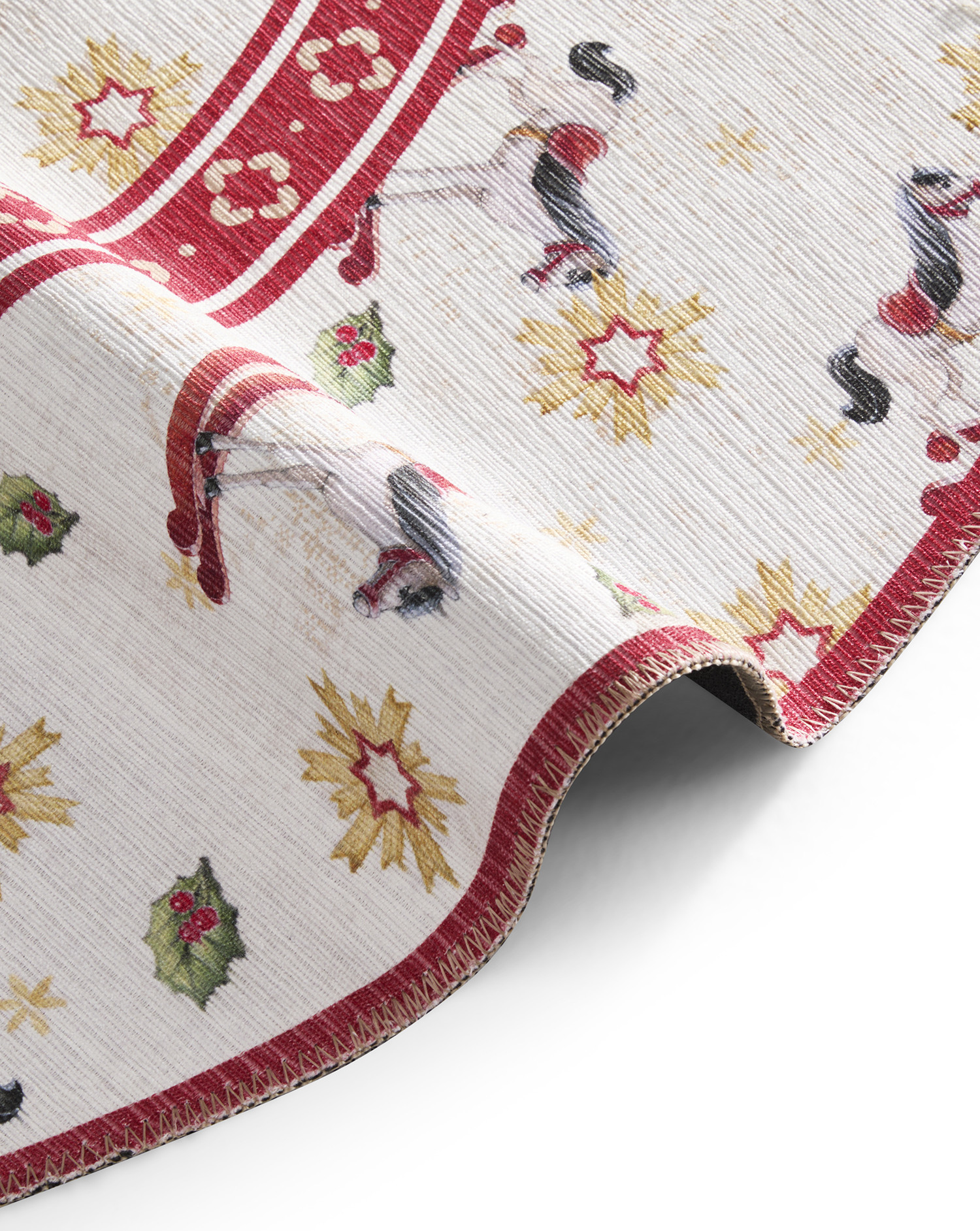 Rad kobercov Villeroy & Boch Toy's Delight prináša do interiérov kúzlo Vianoc s nádychom nostalgie. Tieto koberce sú zdobené tradičnými vianočnými motívmi, ktoré vnesú do každého priestoru slávnostnú atmosféru. Vyrábajú sa z vysoko kvalitného polyesteru, vďaka čomu sú nielen odolné, ale aj príjemné na dotyk. Ich povrch nezdobí klasický vlas, ale potlač, čo im dodáva moderný a praktický vzhľad s veľmi nízkym profilom. Praktickou vlastnosťou týchto kobercov je protišmyková rubová strana, ktorá zaisťuje, že lepšie drží na svojom mieste, a to aj na hladkých povrchoch. Sú tiež ideálne pre domácnosti s robotickými vysávačmi a vhodné na vykurované podlahy. Okraje kobercov sú po celom obvode starostlivo obšité, čo zvyšuje ich trvanlivosť a dodáva im elegantný vzhľad. V neposlednom rade majú certifikát Oeko-Tex, ktorý garantuje, že neobsahujú žiadne škodlivé látky.