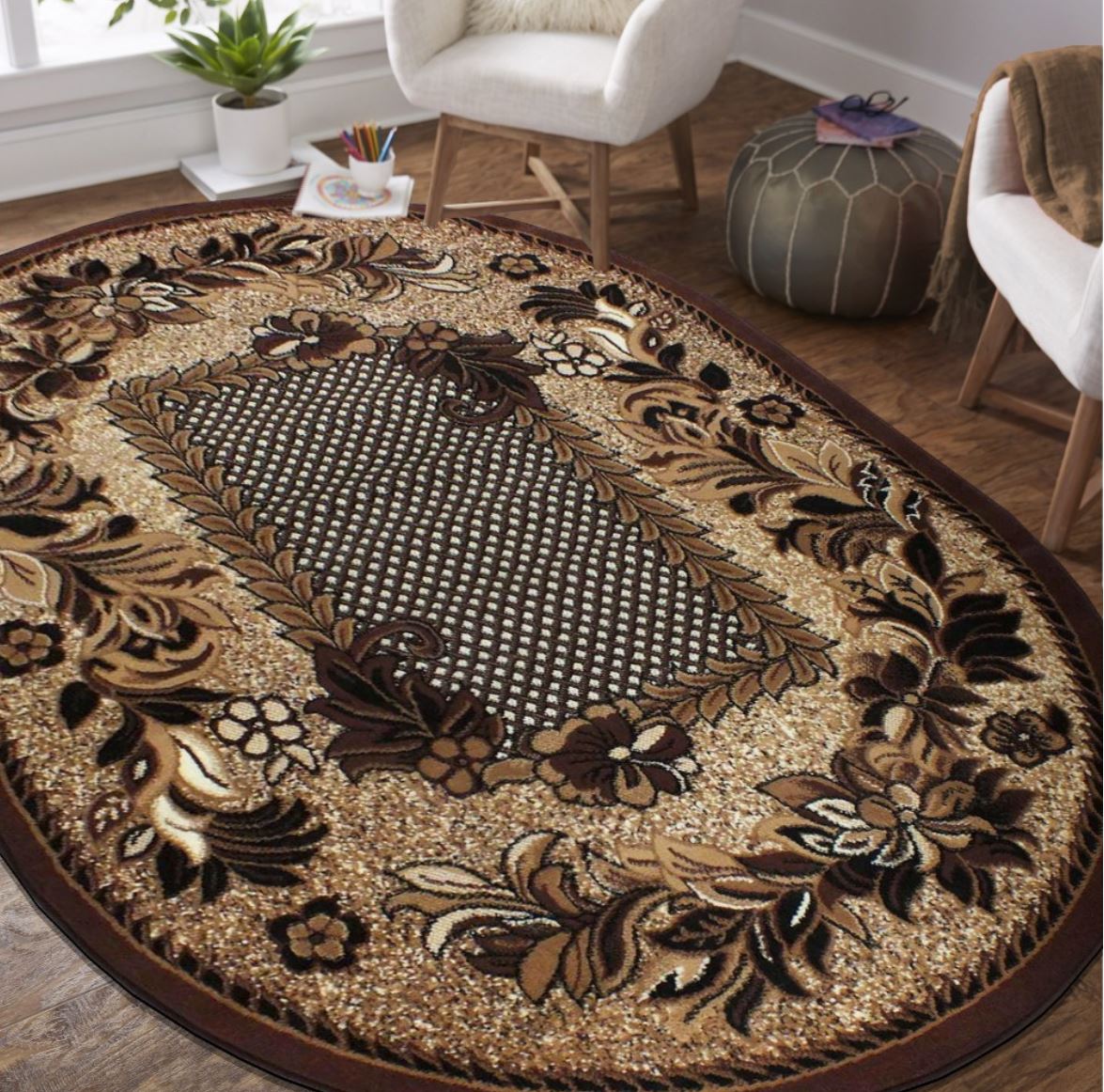 Kusový oválny koberec ALPHA Flower - hnedý