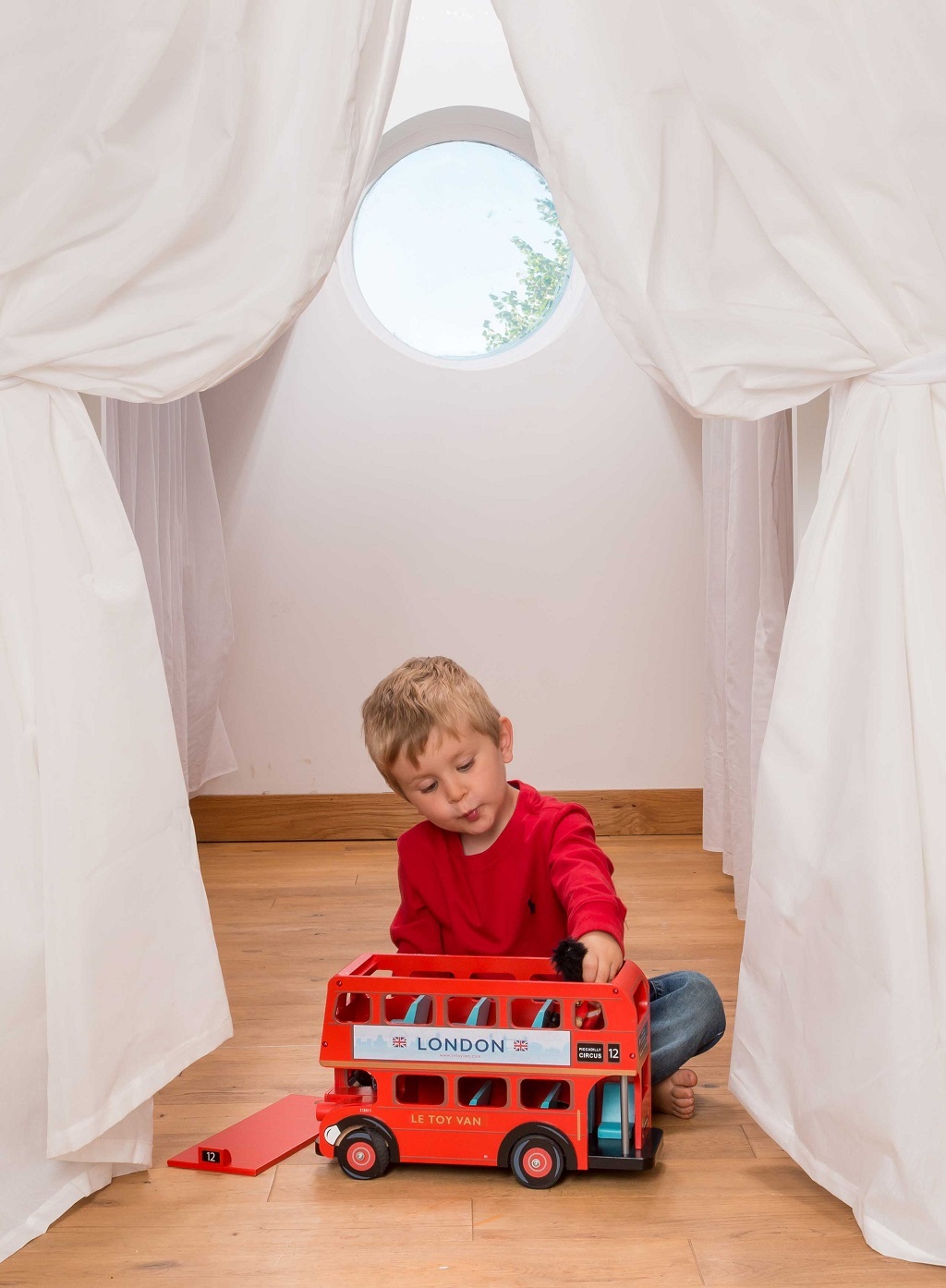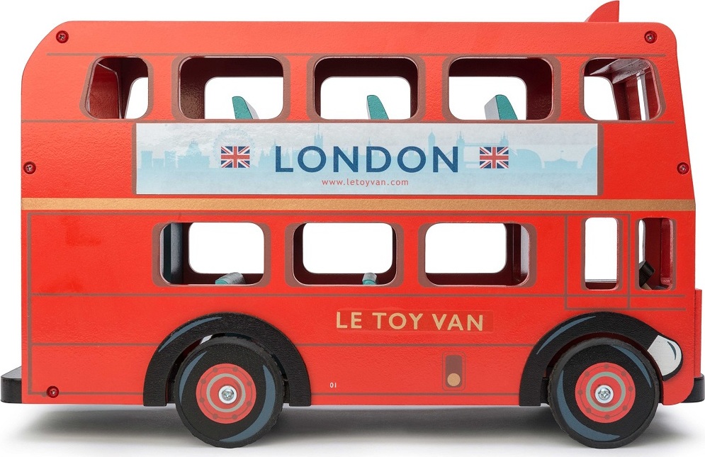 S autobusom London môžete toto hlavné mesto prejsť bezpečne a štýlovo. Ikonická hračka vyhrala niekoľko ocenení a je zrejme najobľúbenejšou hračkou z ponuky Le Toy Van. Sýto červený exteriér londýnskeho dvojposchodového autobusu má realistické značenie, deti si s ním určite užijú mnoho predstavivej zábavy. Samozrejme mu nechýbajú sedadlá, má odklápaciu strechu aj vrchné poschodie. Hračka pomôže s rozvojom predstavivosti, zručnosti a jemnej motoriky. Vyrobené z udržateľného dreva, maľované farbami na báze vody.