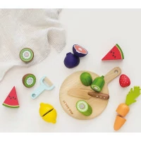 Začínajúci kuchári si určite zamilujú prípravu lahodných jedál s touto nádhernou 18-dielnou sadou. Nápaditá hračka je skvelým doplnkom pri scenároch a hraní rolí. Obsahuje prírodnú drevenú doštičku, škrabku, nôž a výber chutne vyzerajúcich potravín, ktoré môžu byť pomocou šikovného suchého zipsu ľahko „nakrájané“. Skvelý darček na podporu sociálnych zručností, zlepšenie obratnosti a zdokonaľovanie jemnej motoriky! Súprava je vyrobená z dreva s certifikáciou FSC® (drevo z lesov obhospodarovaných udržateľným spôsobom) a zdobená farbami na vodnej báze bezpečnými pre deti.