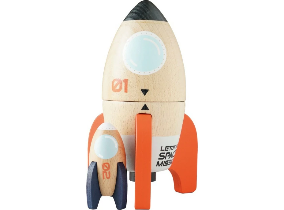 Vzleťte až za hranice hviezd s touto vzrušujúcou sadou! Pripravte veľkú raketu, otvorte jej magnetické veko a odhaľte tú menšiu ukrytú vo vnútri. Perfektný darček a skvelá inšpirácia ku kreatívnej hre! Malí prieskumníci budú určite ohromení dvojicou rakiet na mieru stvorených pre všetky medzigalaktické dobrodružstvá! Súprava vesmírnych rakiet je vyrobená z dreva s certifikáciou FSC® (drevo z lesov obhospodarovaných udržateľným spôsobom) a zdobená farbami na vodnej báze bezpečnými pre deti.