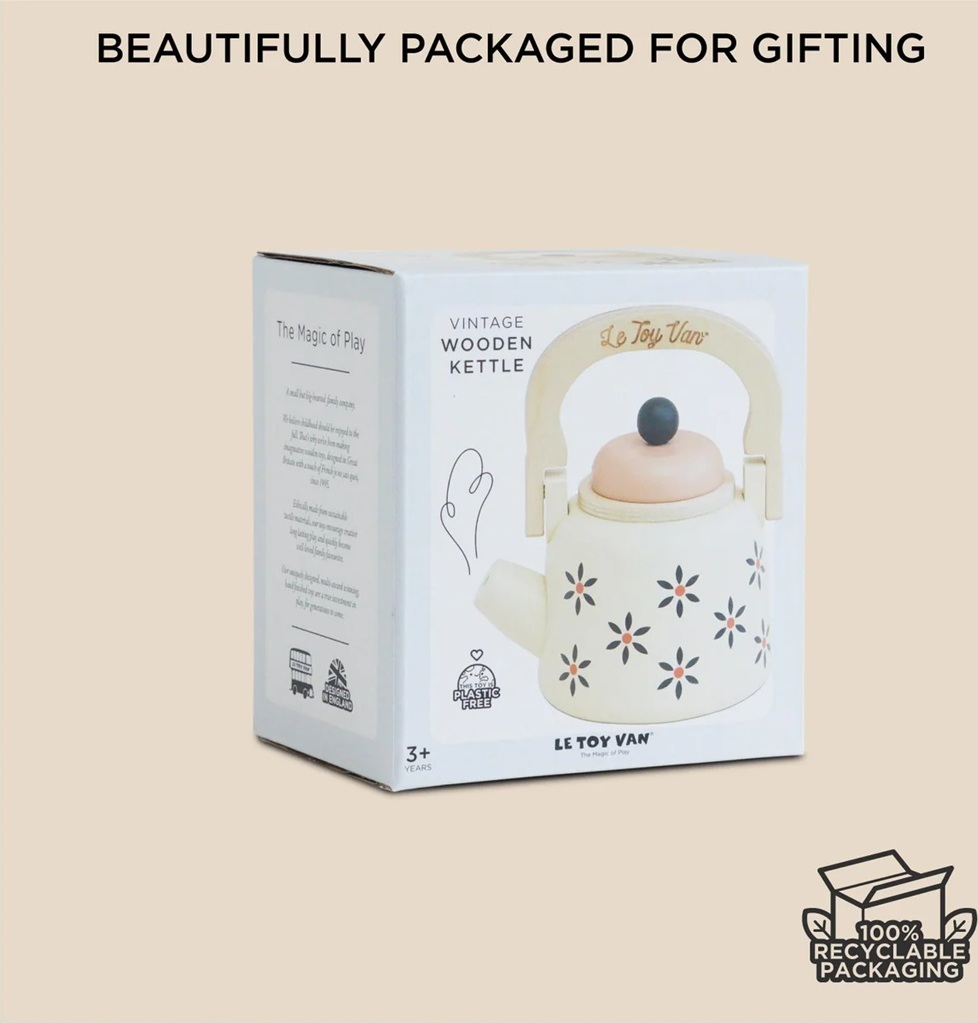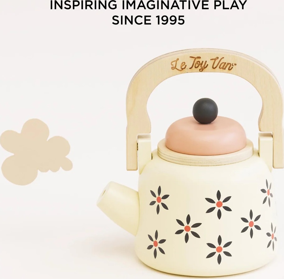 Táto hračka, ozdobená jemnými umeleckými dielami s motívmi flóry, vyžaruje nadčasovú krásu. Kanvica je lakovaná netoxickou krémovou farbou na vodnej báze, takže je bezpečná pre najmenších a zároveň šetrná k prírode. Vyrobená je z certifikovaného FSC® dreva, čo zaručuje kvalitný a udržateľný pôvod materiálu. Nechýba ani praktická nalievacia rukoväť s krásnymi gravírovanými detailmi. Vďaka odnímateľnému viečku sa deti môžu hrať na prípravu čaju či iných kúzelných nápojov a rozvíjať tak svoju predstavivosť aj jemnú motoriku. Hračka je navyše úplne bez plastov, čo poteší všetkých rodičov, ktorým záleží na ekológii a dlhej životnosti hračiek. Ideálny darček pre všetky malé kuchárky a kuchárov.