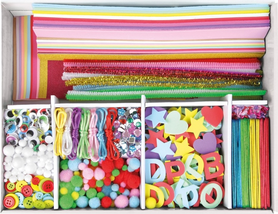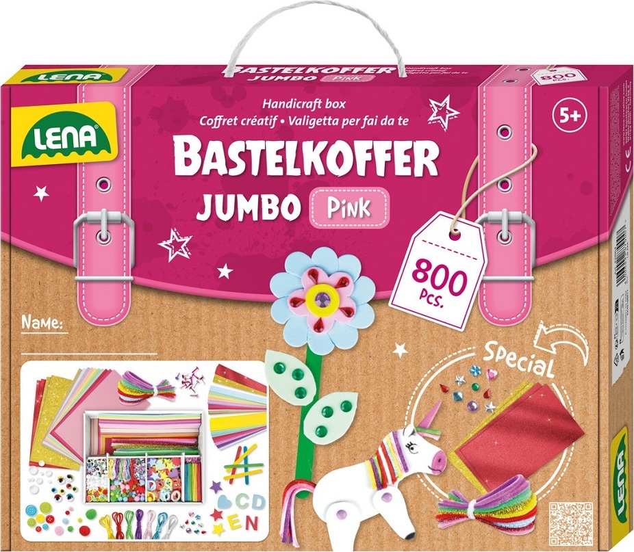 Bohato vybavený kufrík pre malých domácich majstrov prináša deťom nekonečné možnosti tvorenia a zábavy. Súprava obsahuje až 800 kreatívnych dielikov, vďaka ktorým si deti môžu vyrábať vlastné dekorácie, obrázky aj originálne výtvory podľa svojej fantázie. V praktickom kufríku nájdete pestrý mix materiálov, ako sú farebné papiere, diely z penovej gumy, chlpaté tyčinky, oči, brmbolce, farebné drievka na tvorenie (nanukové), gombíky a mnoho ďalšieho. Všetko je ladené do veselnej farebnej kombinácie ružovej a fialovej, ktorá poteší najmä malé tvorky. Kufrík umožňuje ľahké uloženie aj prenášanie všetkých komponentov, takže si deti môžu tvorenie užiť doma aj na cestách. Ideálna sada pre všetky deti, ktoré rady tvoria, vyrábajú a objavujú nové možnosti kreatívnej zábavy.