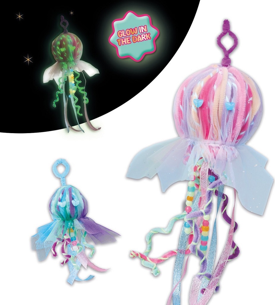 Túto kreatívnu sadu na výrobu prívesku svietiacej medúzy jednoducho musíte mať! Vytvorte si vlastný svietiaci prívesok medúzy, ktorý žiari v tme a ozdobí batoh, kľúče alebo detskú izbu. Táto atraktívna kreatívna súprava pre deti obsahuje všetko, čo malí tvorcovia potrebujú na výrobu originálnej dekorácie. Ideálna a skvelá hračka na tvorenie pre deti, ktoré milujú farby, svetielka a morský svet. V balení nájdete chlpaté drôtiky, svietiacu priadzu, trblietavé stuhy, jemný tylový poťah a svietiace korálky na ozdobu. Vďaka priloženému farebnému návodu krok za krokom je výroba jednoduchá a zvládnu ju aj menšie deti. Svietiaca medúza je nielen krásna dekorácia, ale aj kreatívna hračka, ktorá rozvíja jemnú motoriku, trpezlivosť, fantáziu a radosť z vlastného tvorenia.