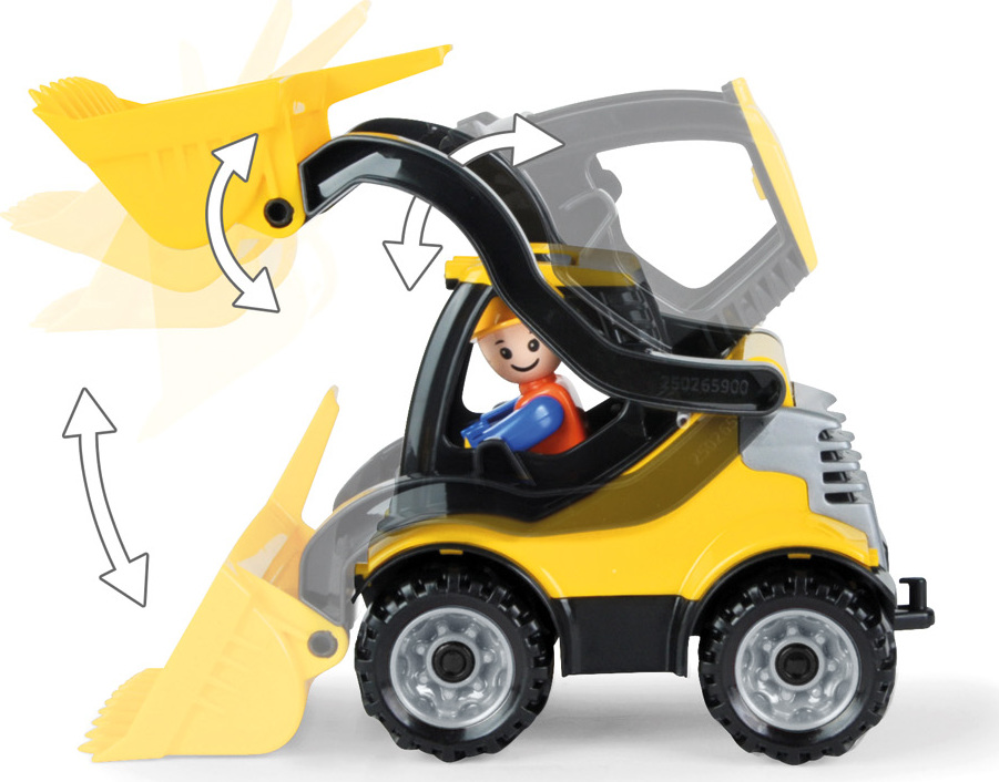 Truckies nakladač z kvalitného plastu a veľmi pevnou stavbou. Plne mechanicky funkčný. Obsahuje odklopiteľnú kabínu s panáčikom.