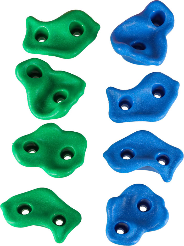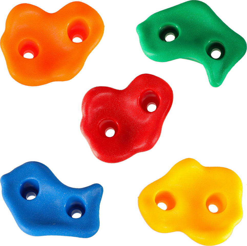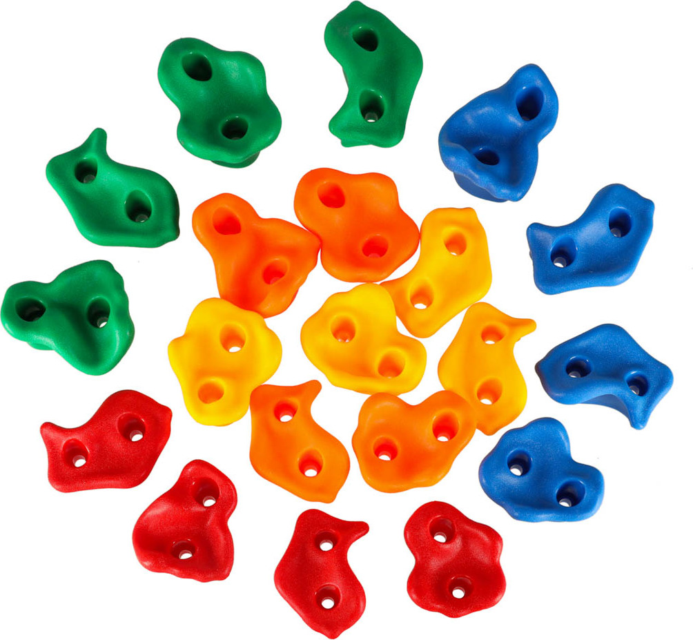 Súprava obsahuje až 20 rôznych lezeckých kameňov, čo sú špeciálne detské úchyty, ktoré umožňujú vytvoriť lezeckú trasu podľa úrovne dieťaťa. Tvary a farby boli navrhnuté s ohľadom na tie najmenšie - každý chyt je dobre tvarovaný a bezpečný pre ruky aj nohy. Lezecké kamene, ktoré sú v sade k dispozícii, sú vyrobené z odolného PE plastu, ktorý zaručuje odolnosť voči poškodeniu a meniacim sa poveternostným podmienkam. Dážď, sneh, horúco - lezecké kamene si zachovajú svoje vlastnosti a vzhľad po mnoho rokov. Lezecké kamene pre deti tak môžete ľahko pripevniť na drevo, betón, OSB stenu alebo altánok. Vytvorte si lezecké steny v izbe, na záhrade, v domčeku na strome – kdekoľvek budete chcieť!