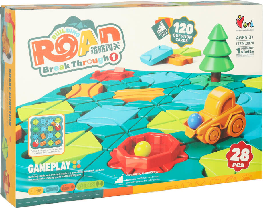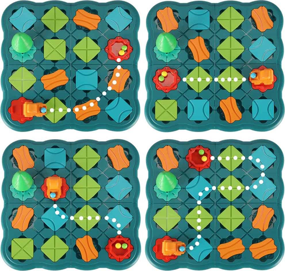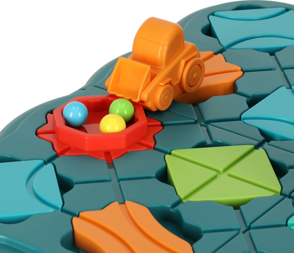 Súprava obsahuje mnoho farebných dielikov, ktoré si deti môžu samé zostaviť. Ich úlohou je stavať cesty, usporiadať zákruty, rovné úseky a križovatky tak, aby dráha viedla od štartu do cieľa. Úlohou naťahovacieho auta je prejsť vopred postaveným bludiskom plným loptičiek a nakoniec ich zhodiť do nádoby. Je to pútavá dosková hra, ale aj bludisko s logickými prvkami, ktoré deti vyzýva k logickému mysleniu. Vďaka rozmanitosti kombinácií môže byť každé rozvrhnutie iné, čo zaisťuje hodiny zábavy bez nudy.